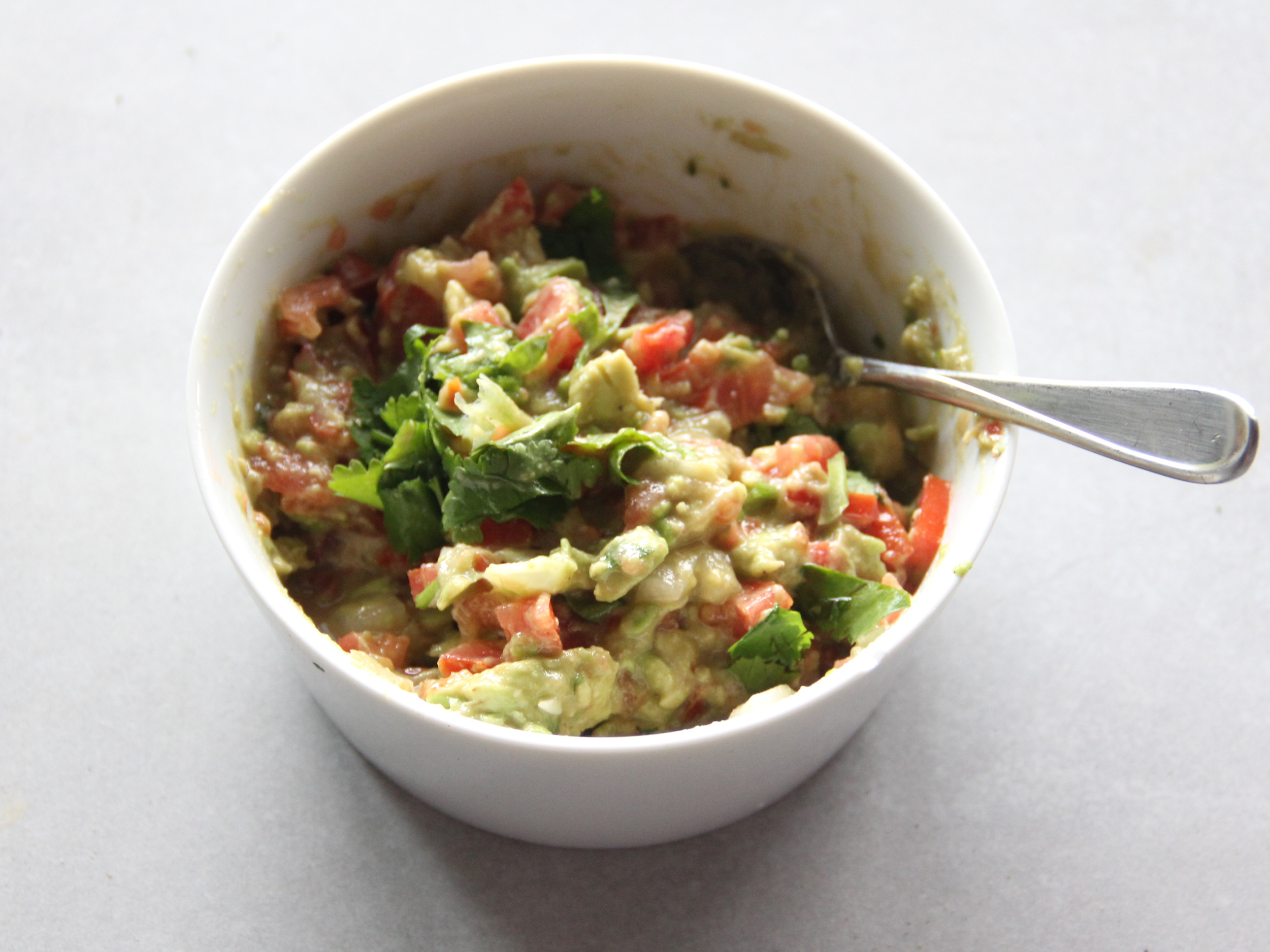 再加入檸檬汁、鹽 、橄欖油、香菜碎攪拌均勻,酪梨醬完成