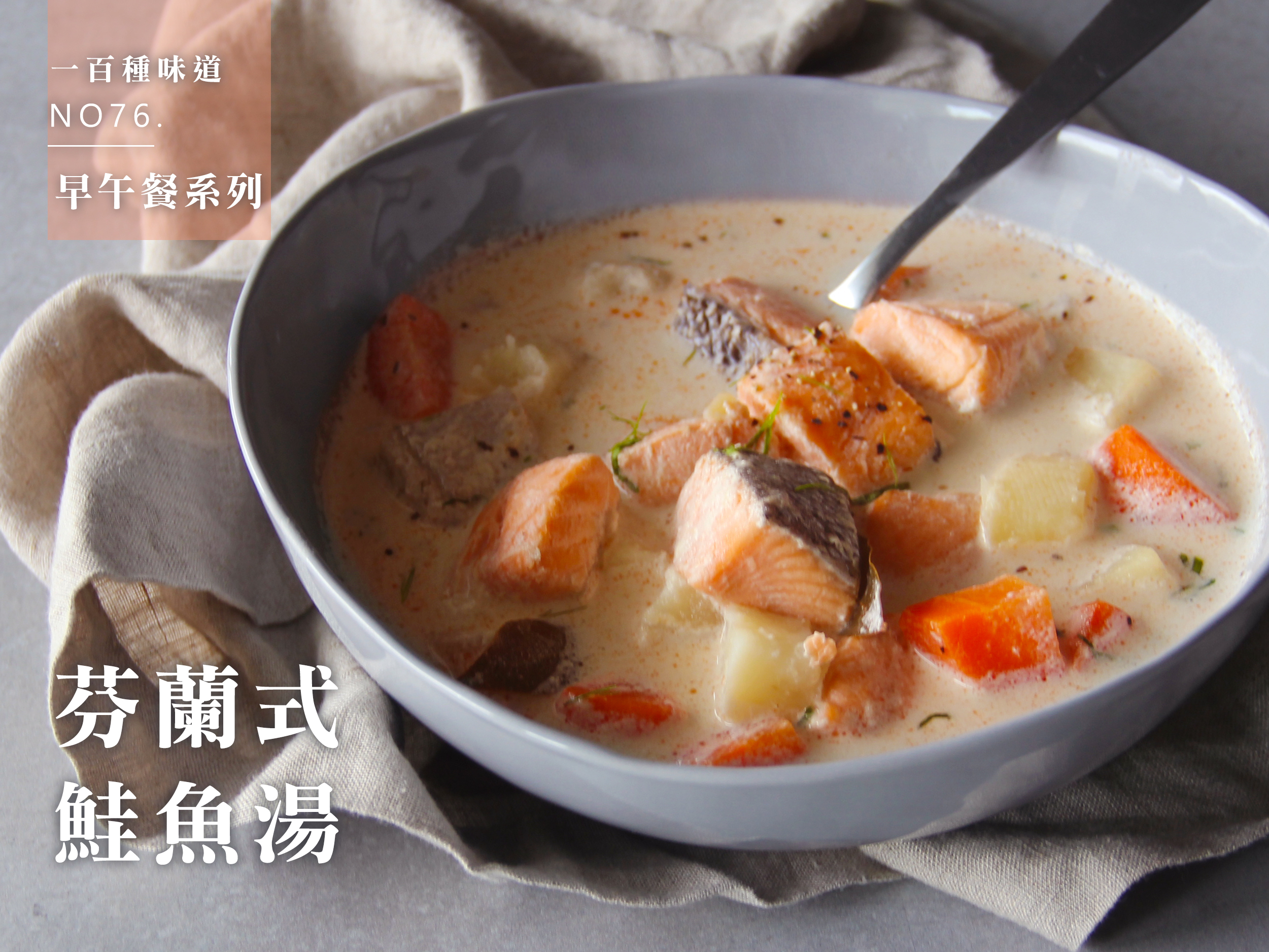 濃濃奶香味,橘紅色油脂的濃郁鮭魚湯
