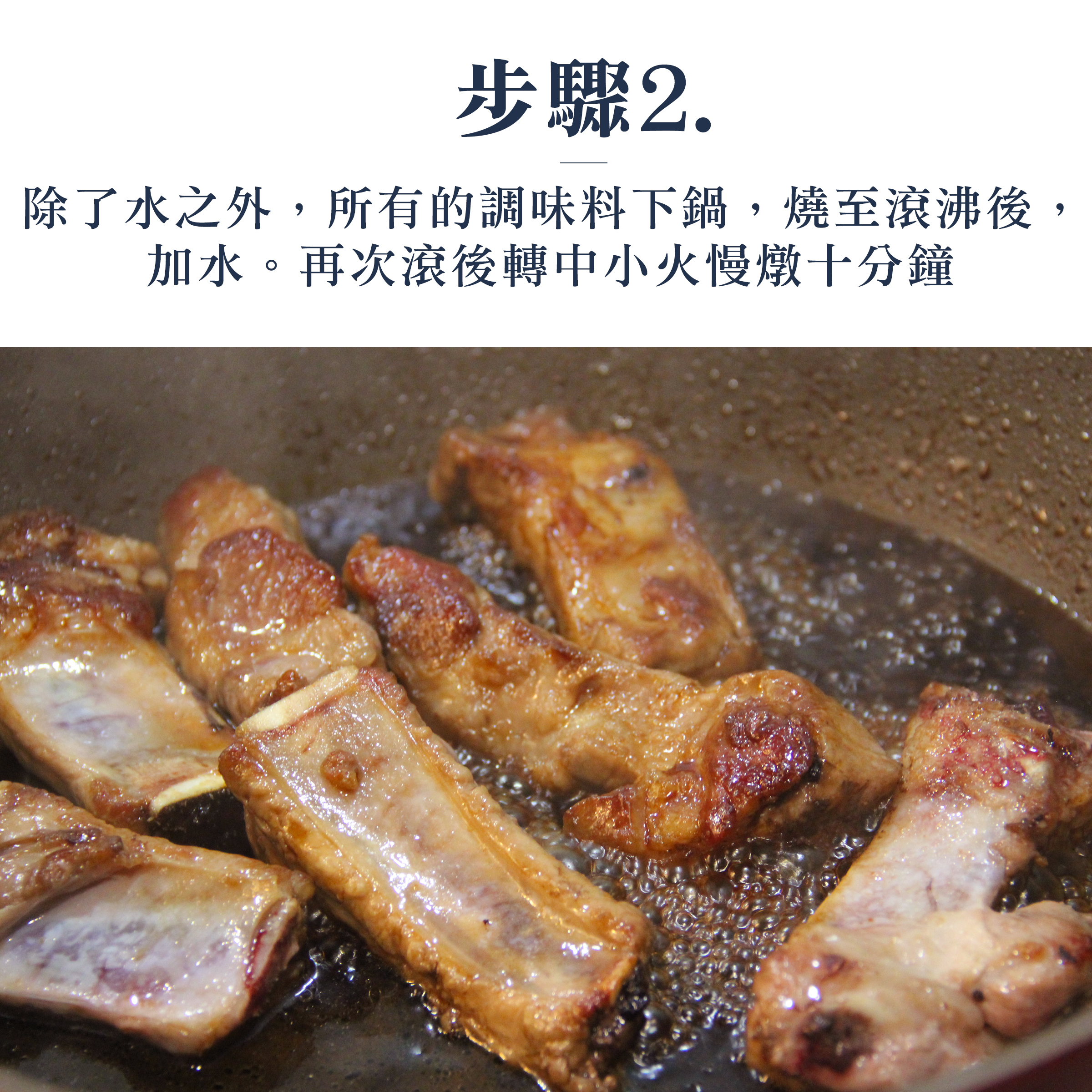 2. 除了水之外,所有的調味料下鍋,燒至滾沸後,加水。再次滾後轉中小火慢燉十分鐘