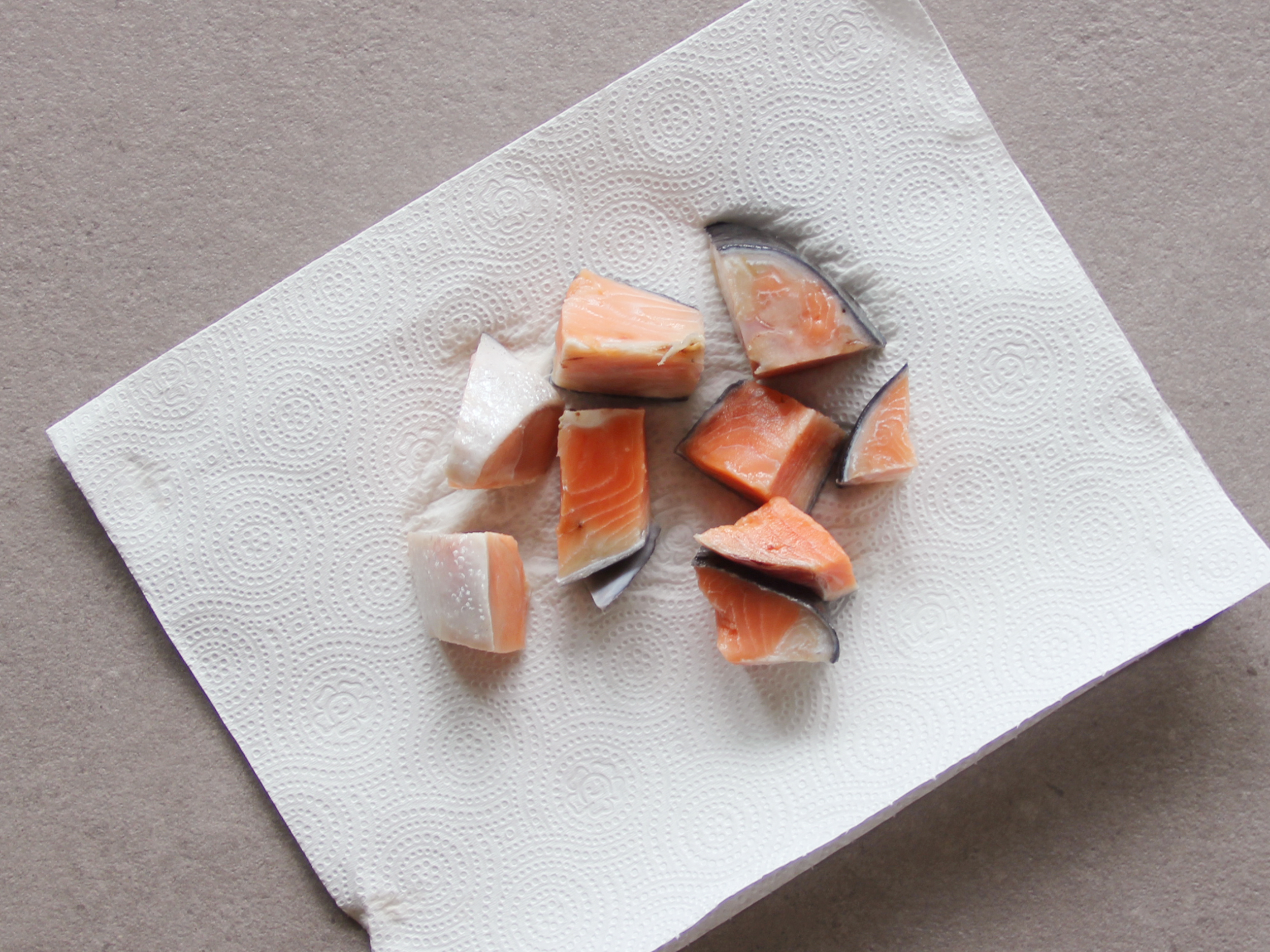 魚頭塊前一晚放冷藏退冰,魚頭清洗,清除多餘的小血管