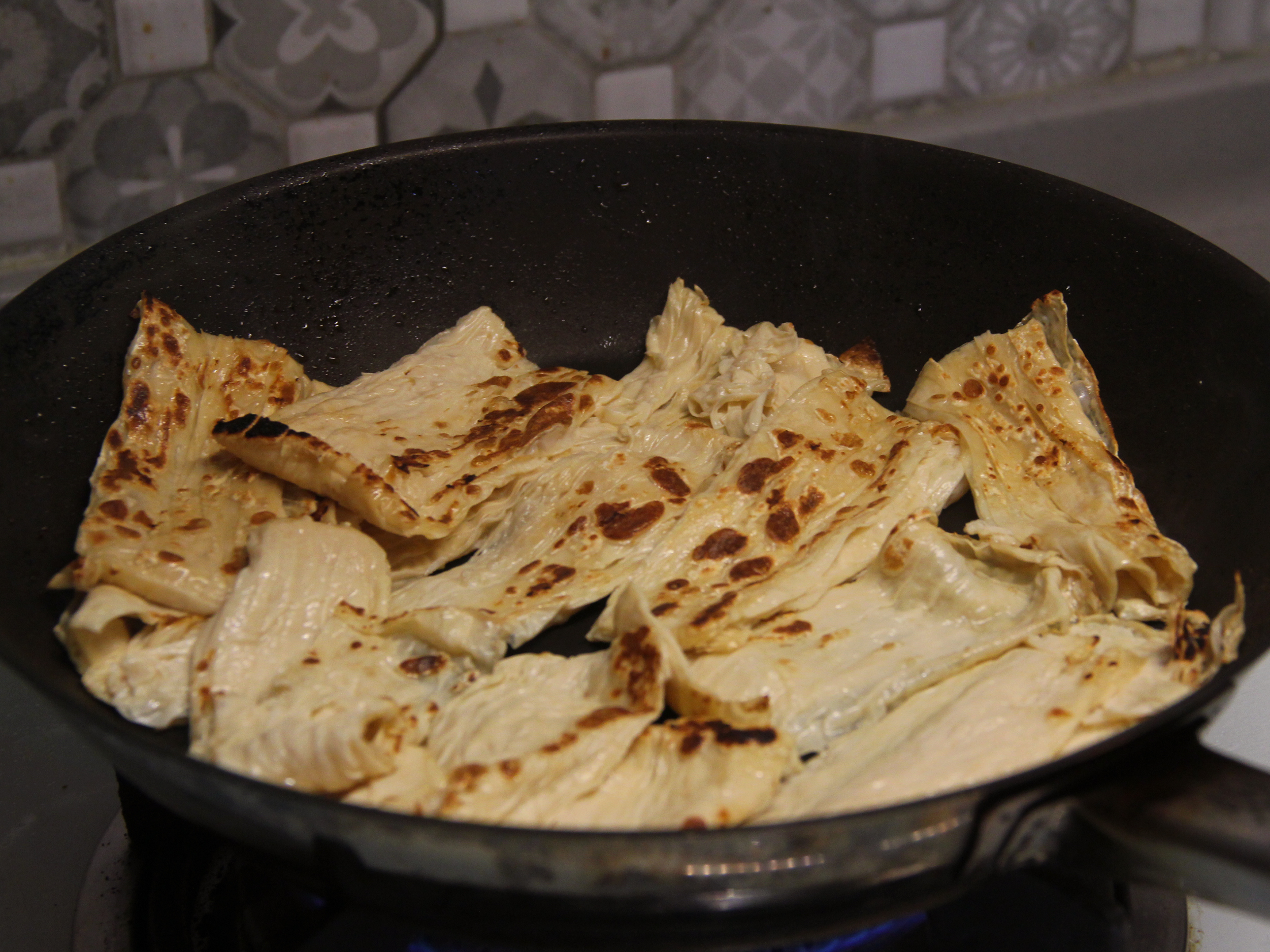 燒滾後加入無糖豆漿續煮開,視個人口味加入鹽巴調味,完成