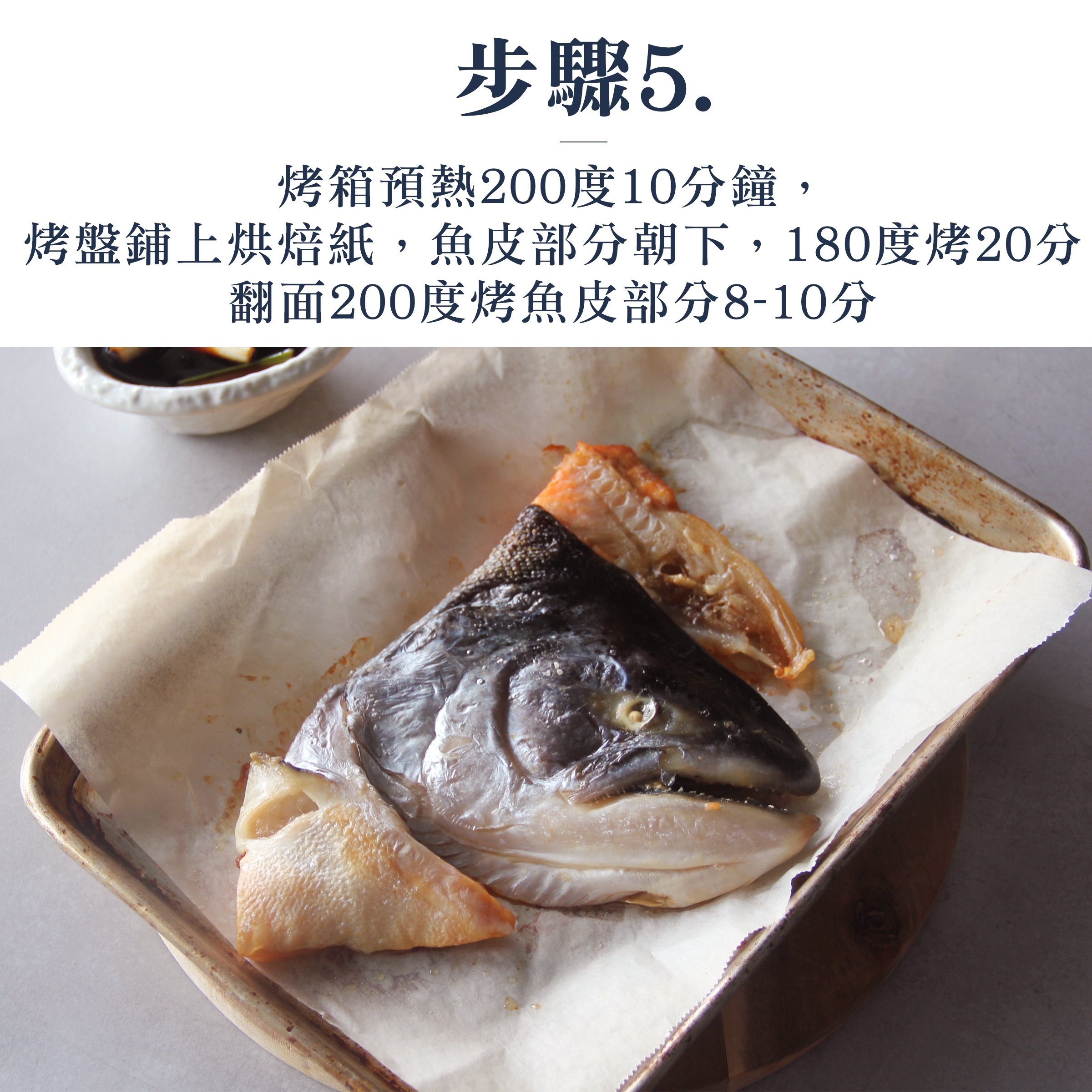 步驟5.烤盤鋪上烘焙紙,魚皮部分朝下,180度烤20分鐘後,翻面200度烤魚皮部分8-10分鐘