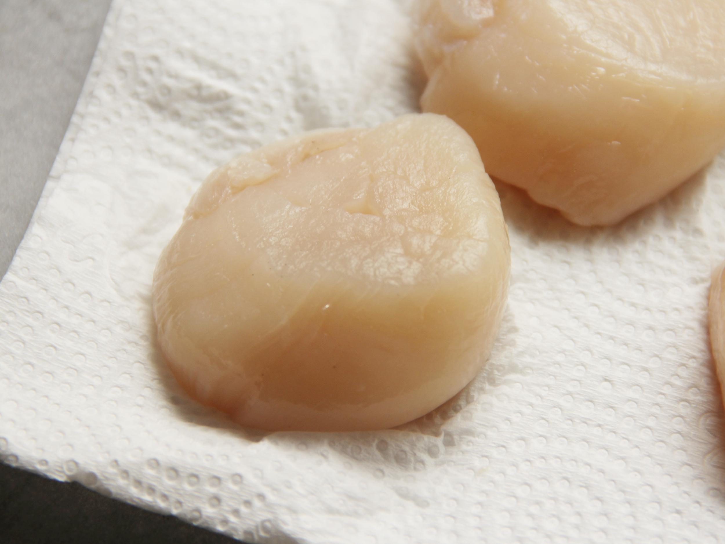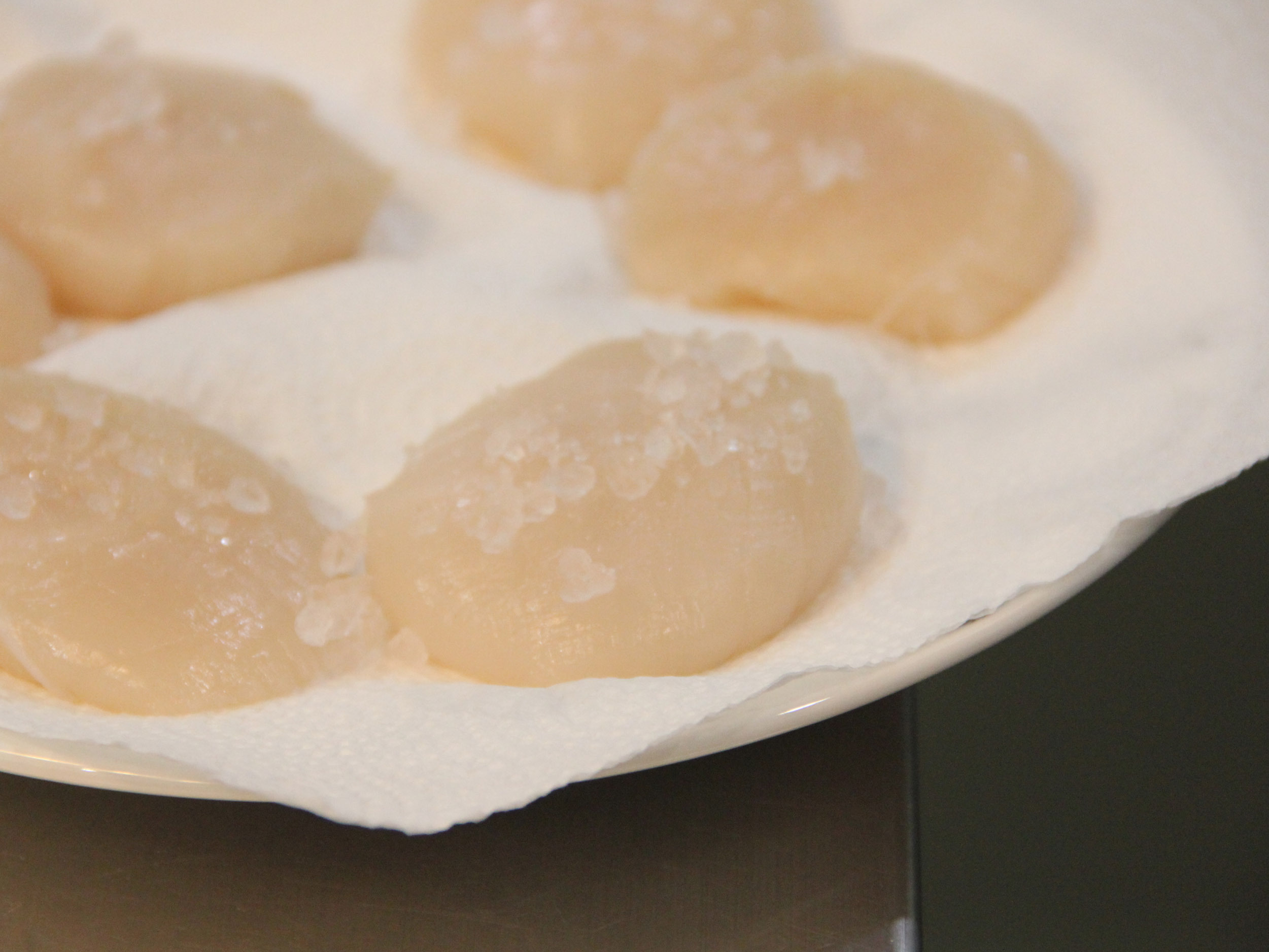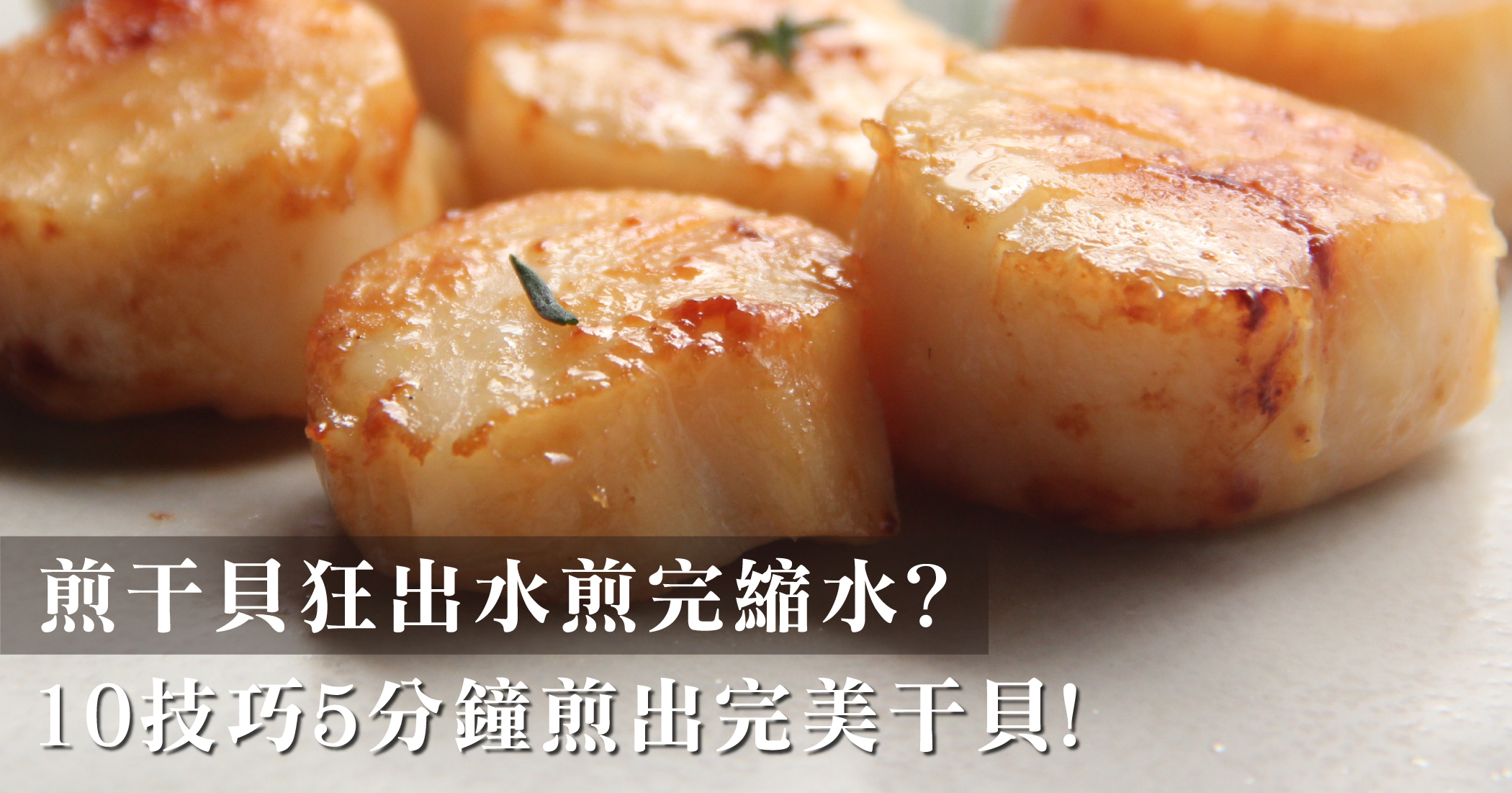 技巧5: 干貝比較大的那面,灑上粗鹽馬上下鍋