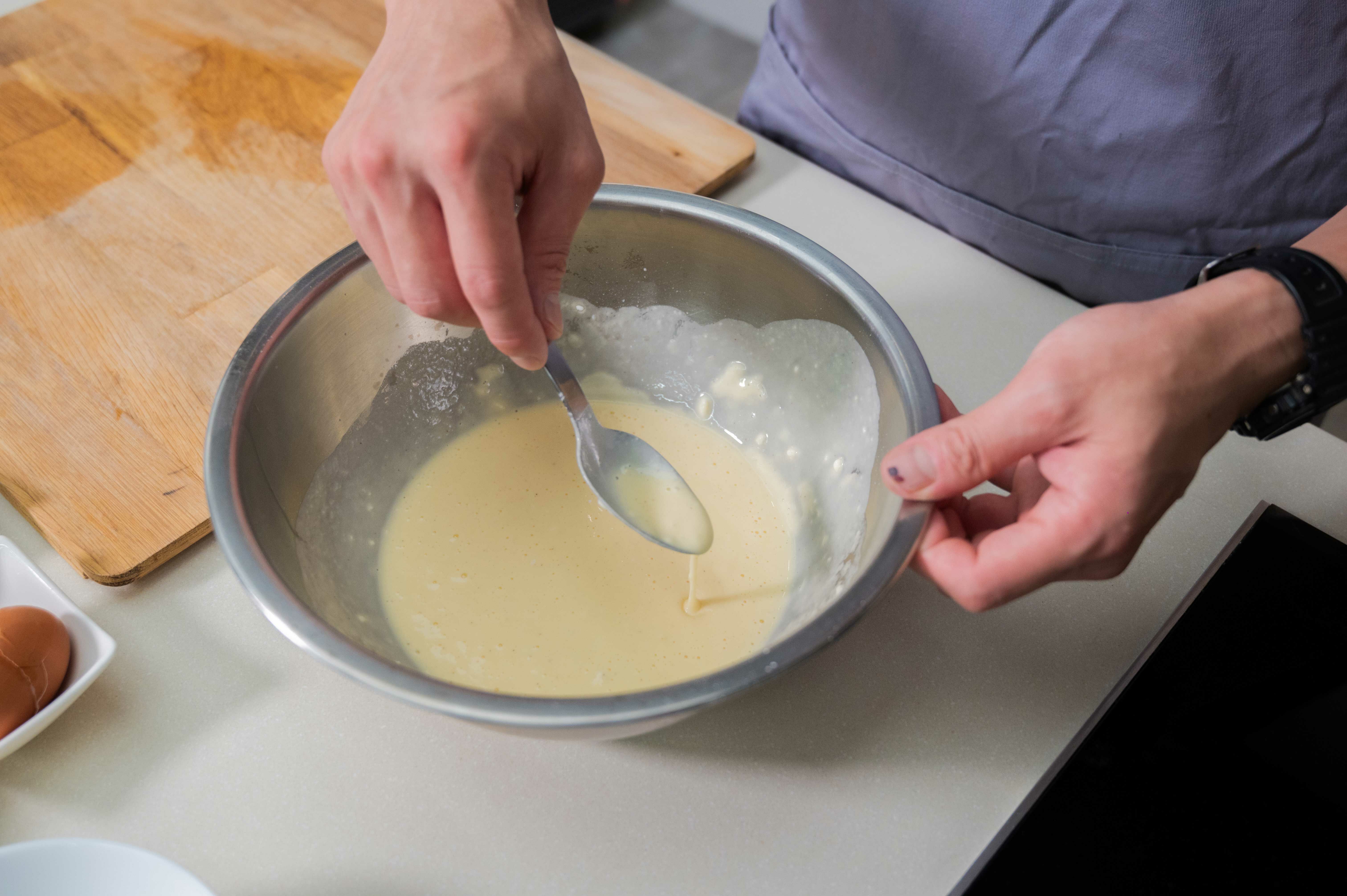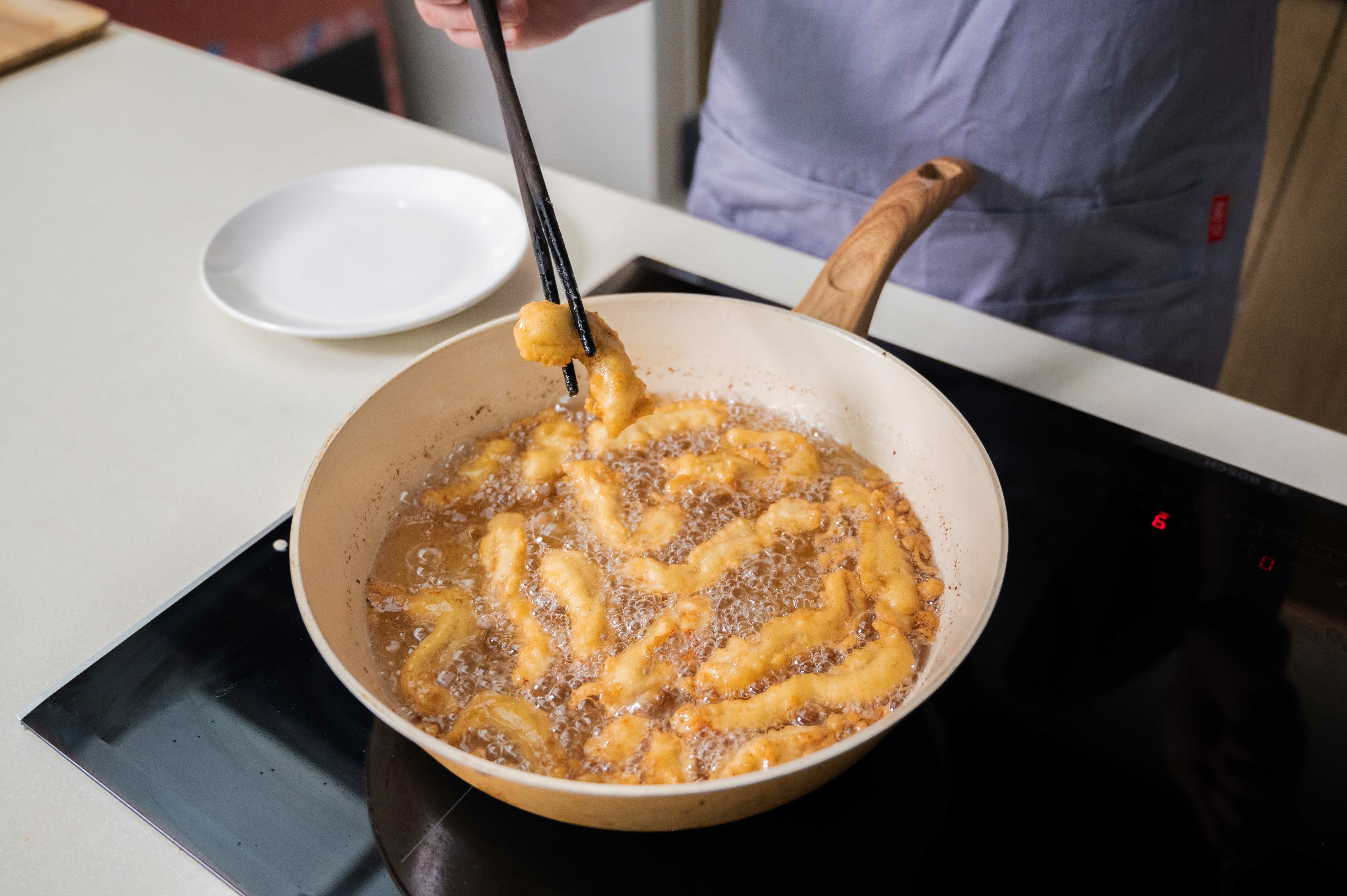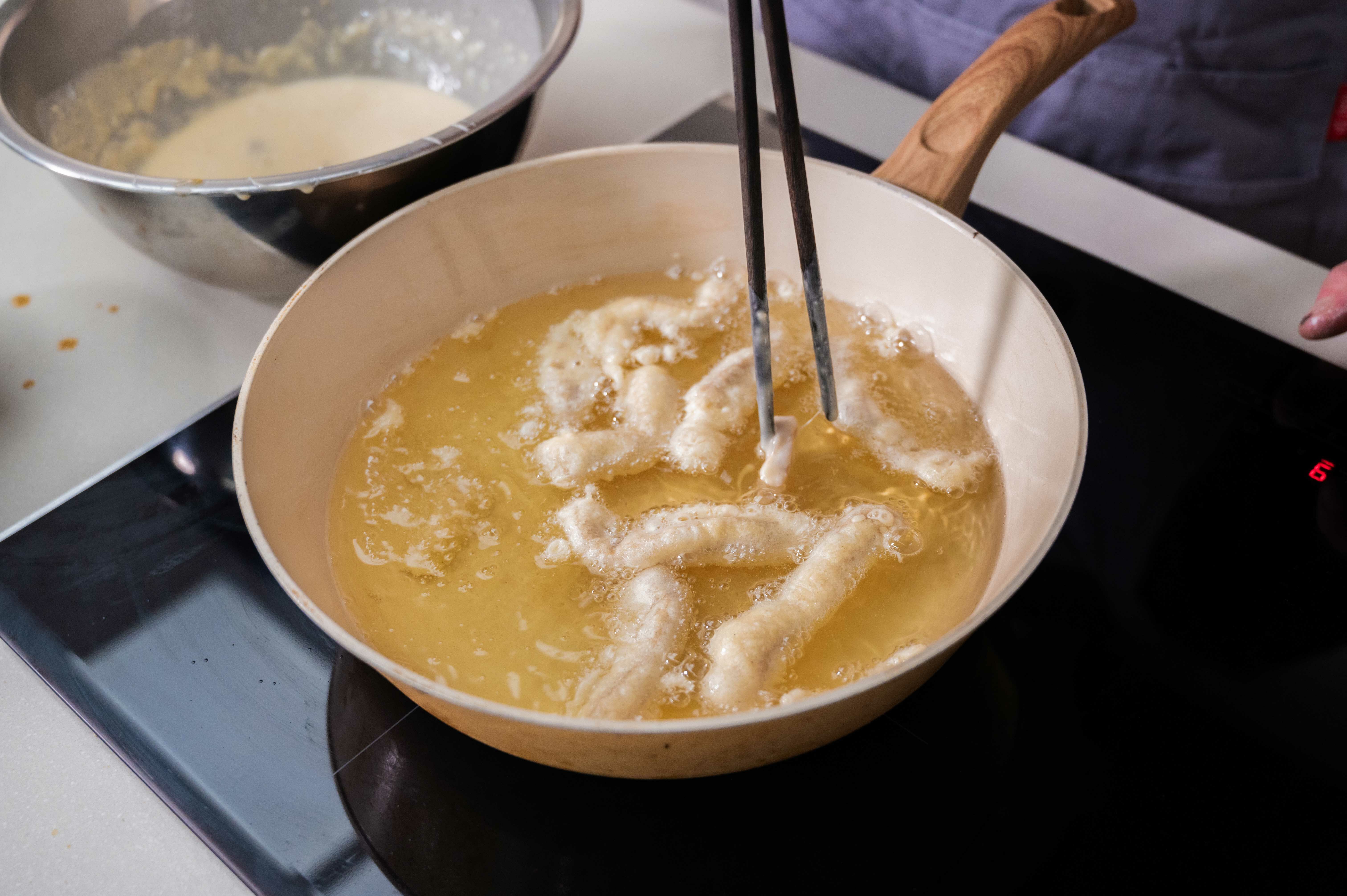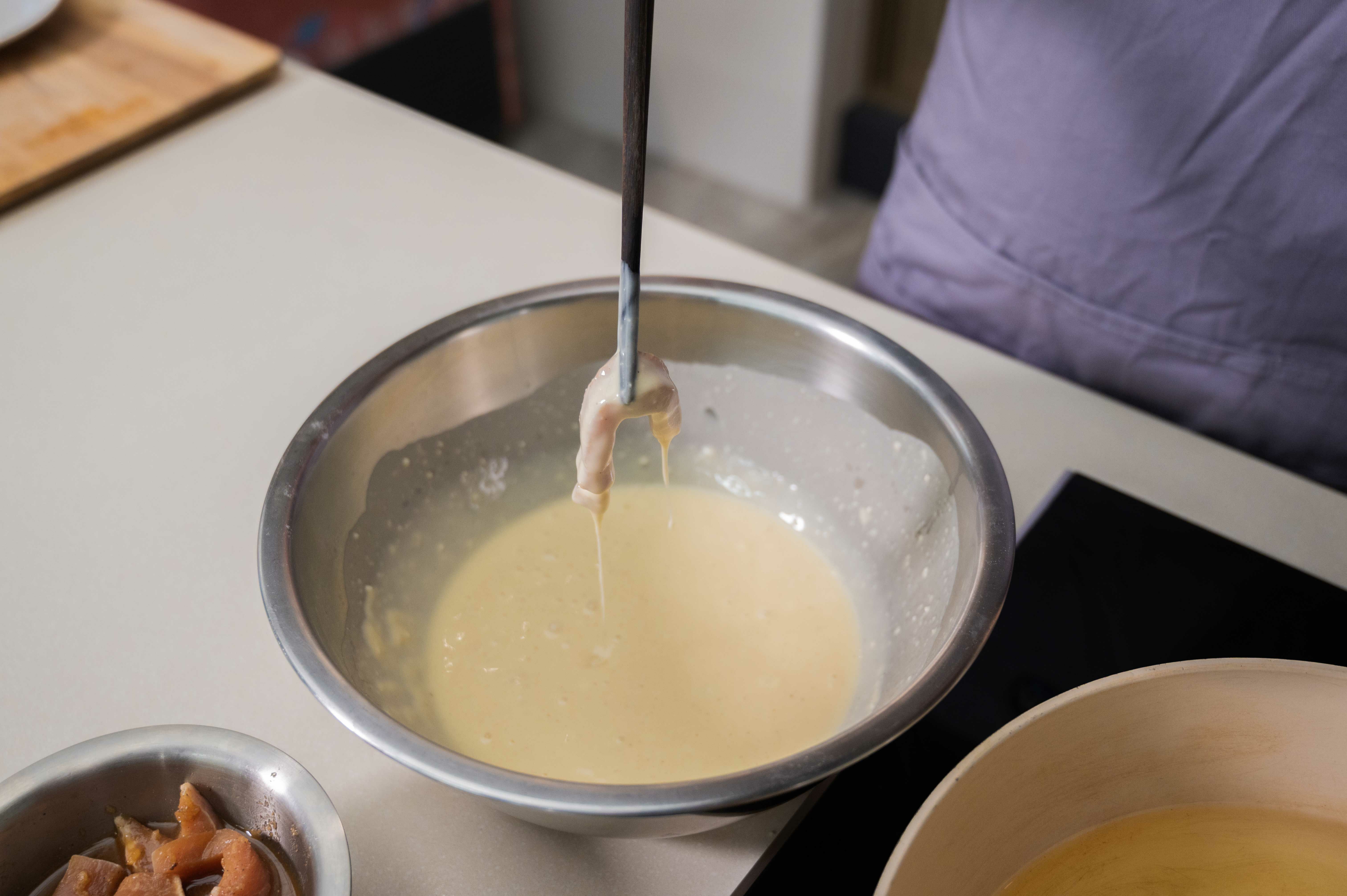 3.取脆漿粉混合飲用水、雞蛋、食用油拌勻形成麵糊狀