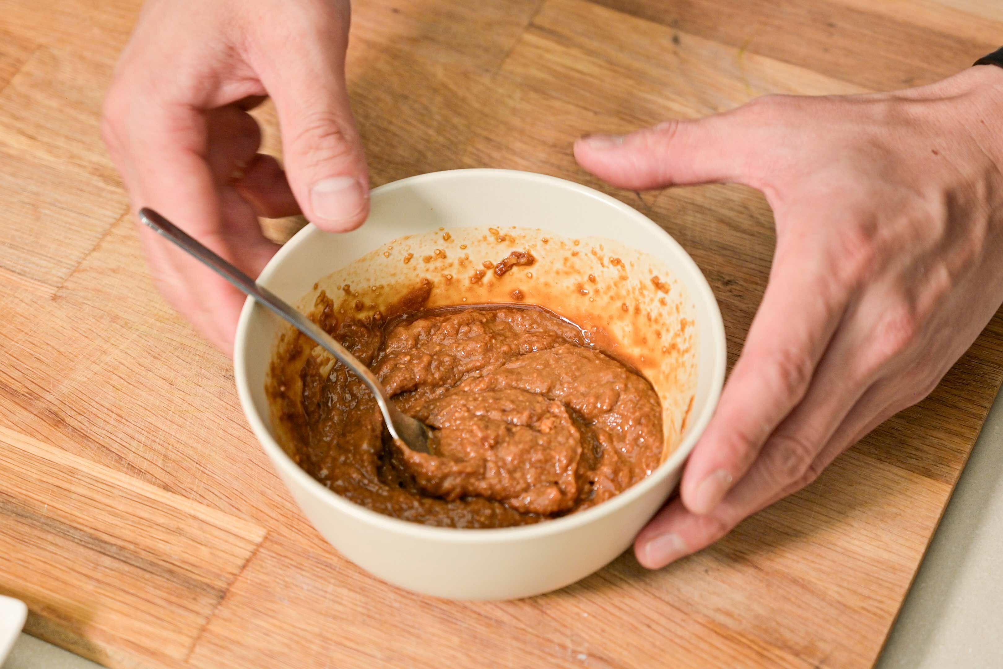 1.將花生醬、芝麻醬、蒜泥、少許食用水,混合拌好備用