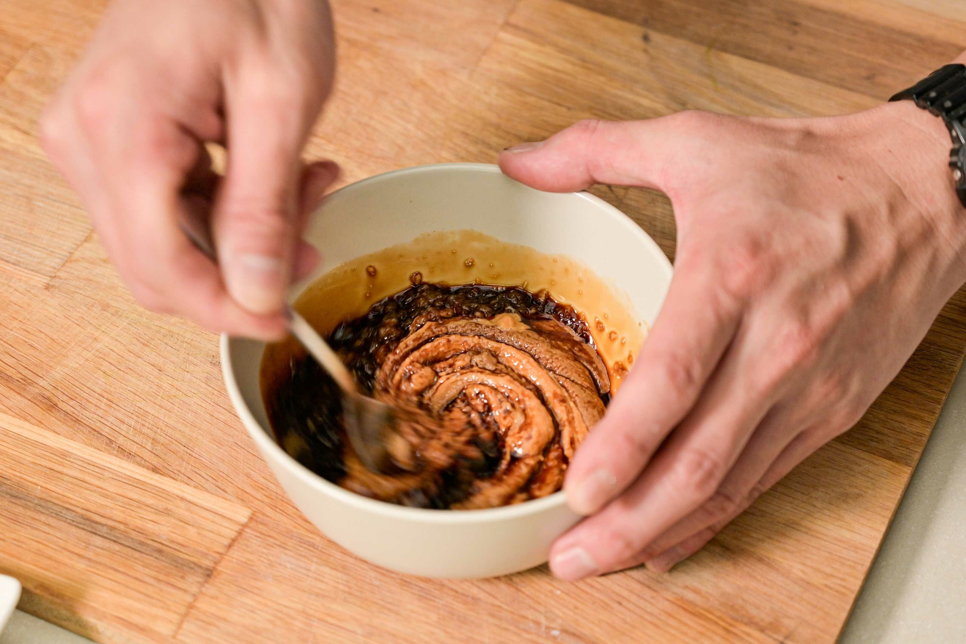 2.秘製醬汁以烏醋、醬油、糖、少許食用水混合而成