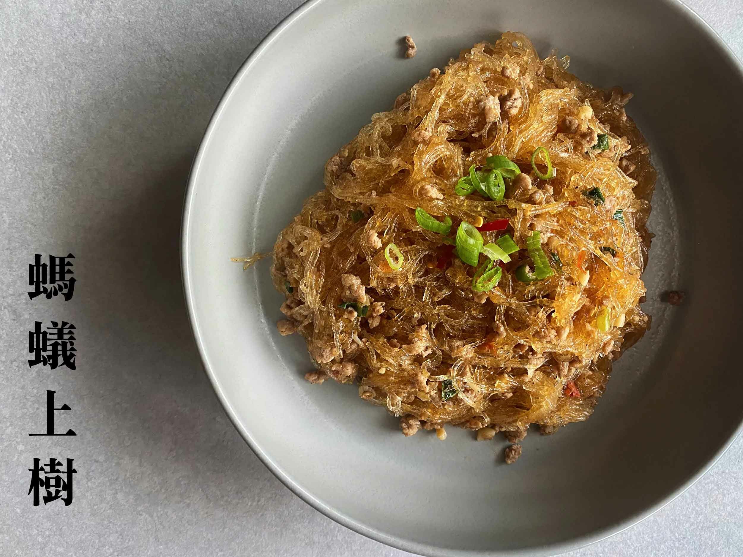 3.加入蒜末、薑末、青蔥、辣椒末、豆瓣醬與米酒翻炒