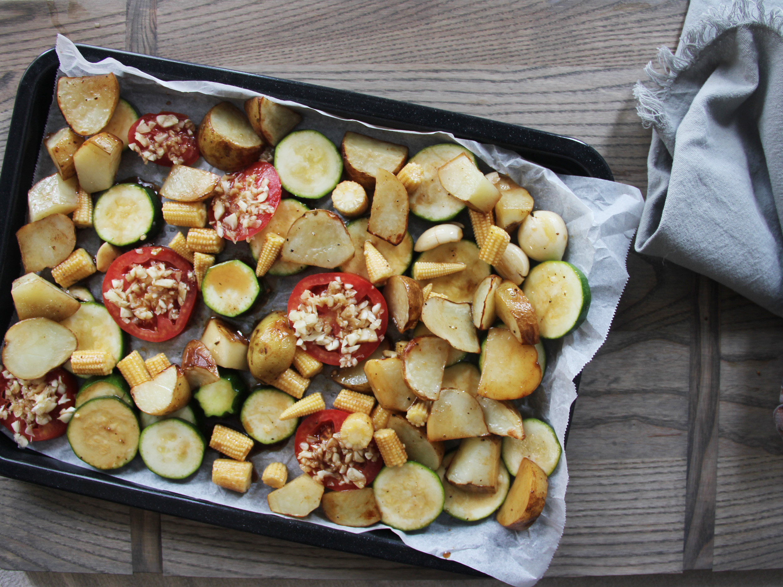 Step 3: 再加入剩餘的蔬菜一起至烤箱約20~25分鐘左右即完成