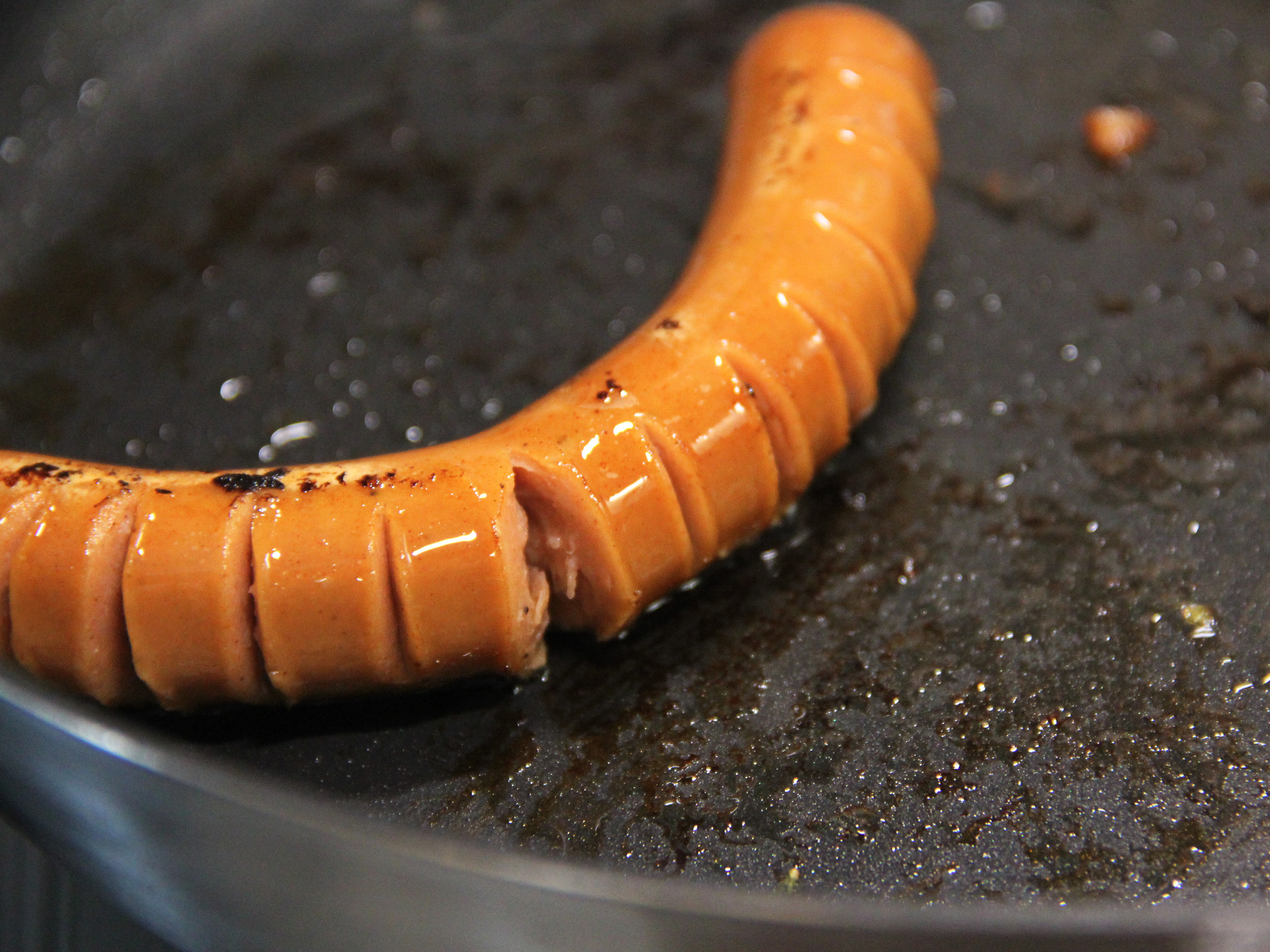 Step 5:德式香腸也是快速煎或烤覆熱一下就可以,原肉煙燻火腿片冷藏解凍後即可食用(冷熱皆宜)