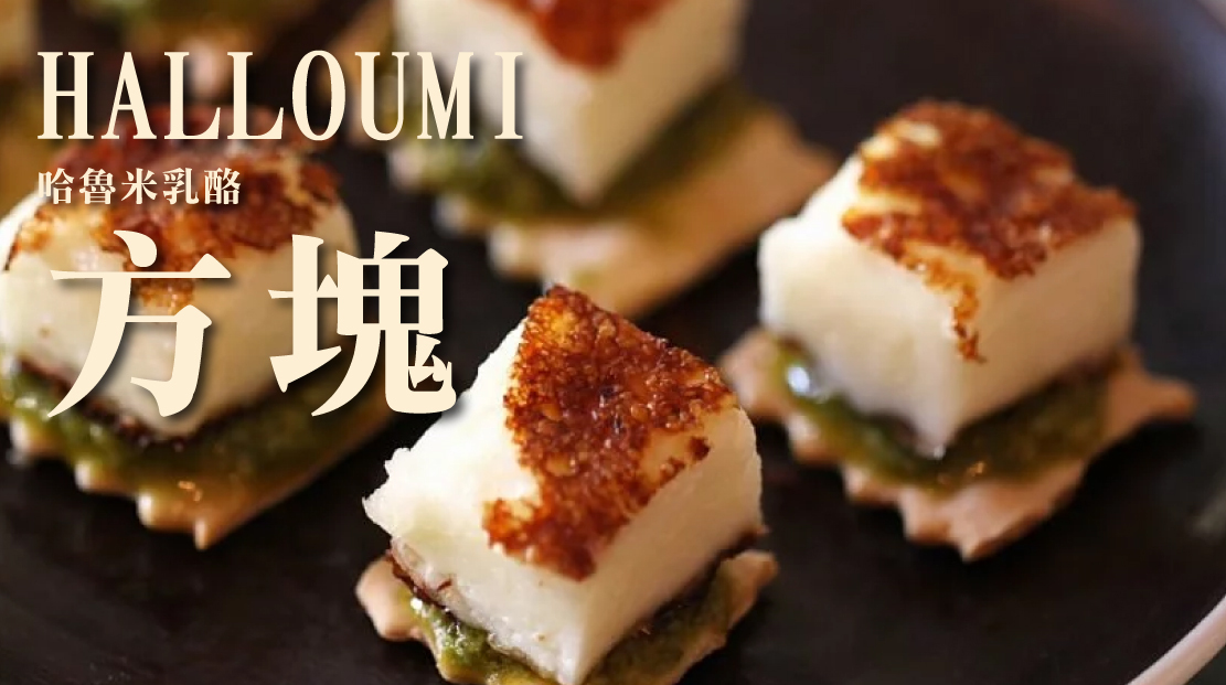 搭配方式: 將Halloumi煎過切成小方塊,隨意散放在盤上。