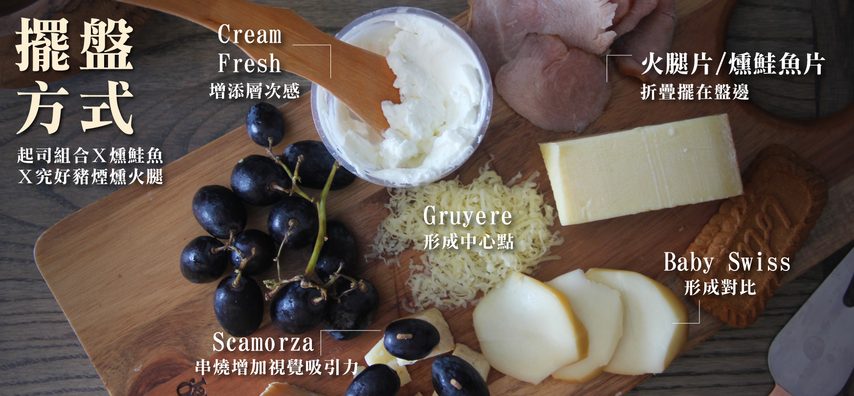 搭配方式: 以法式酸奶油盅擺放在Gruyere周圍。