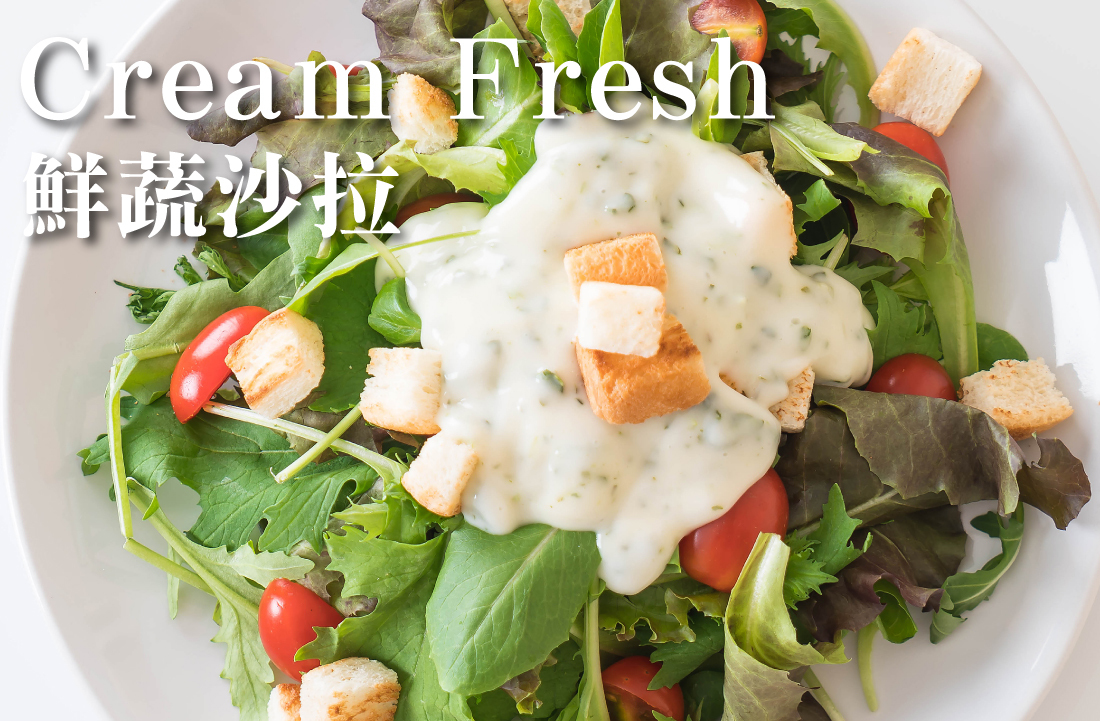 將 Crème Fraîche 均勻撒在新鮮蔬菜沙拉上,提升沙拉的香滑口感