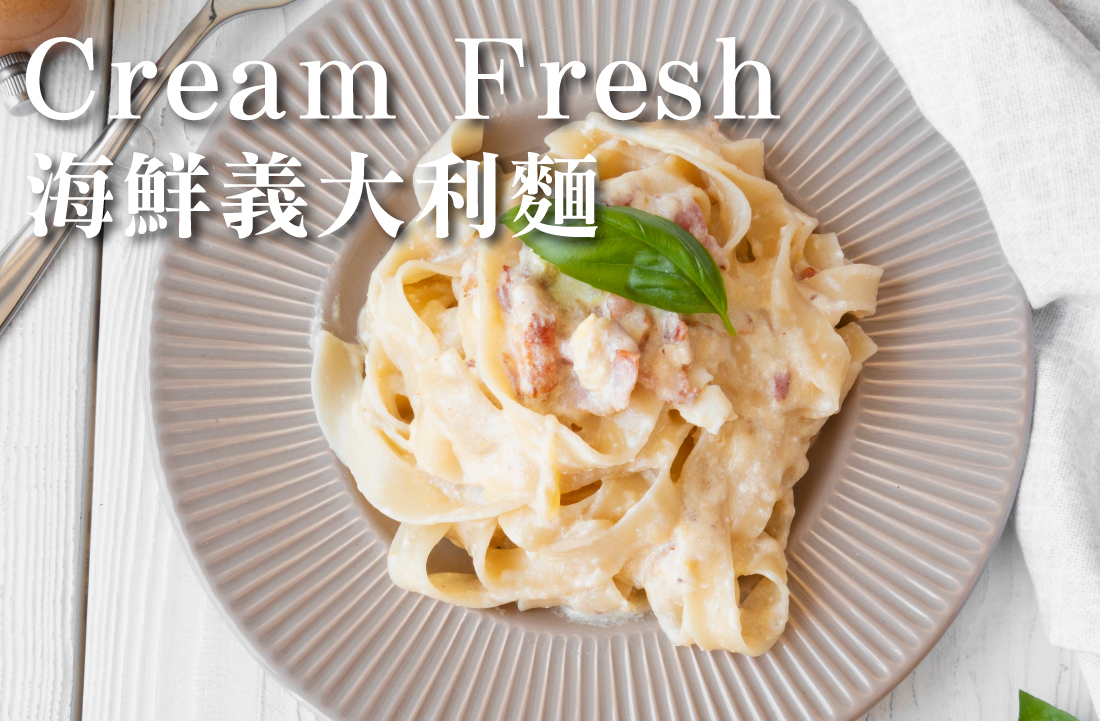 將 Crème Fraîche 與海鮮義大利麵搭配,創造出奶油滑順的醬汁,提升義大利麵的口感。