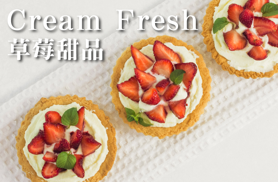 在新鮮草莓上加上一層 Crème Fraîche,打造出清涼甜美的法式甜點。