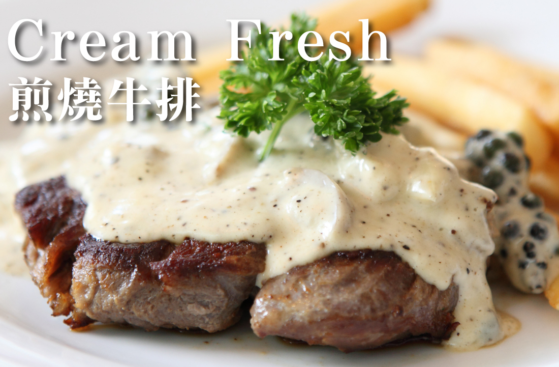 在煎燒的牛排上塗抹一層 Crème Fraîche,增添濃郁的奶香和柔滑口感。