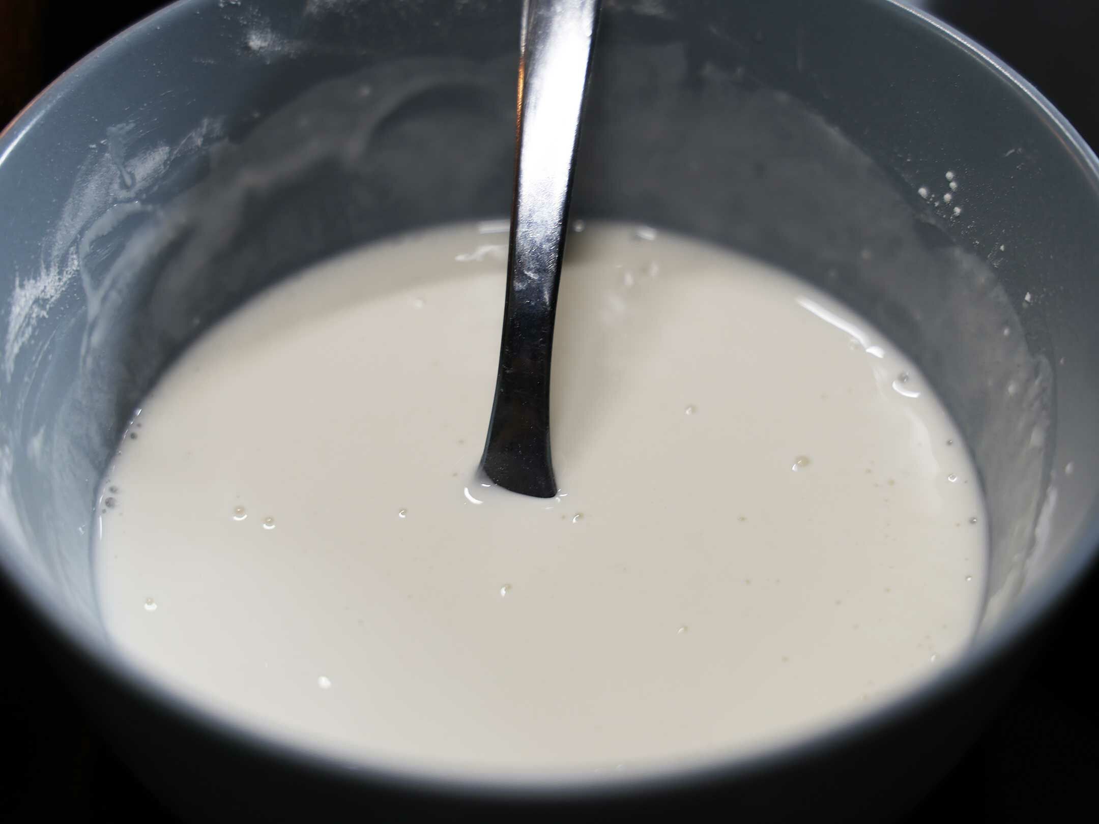 1. 將三種粉和冷水、鹽巴混合拌勻,直到無粉的顆粒