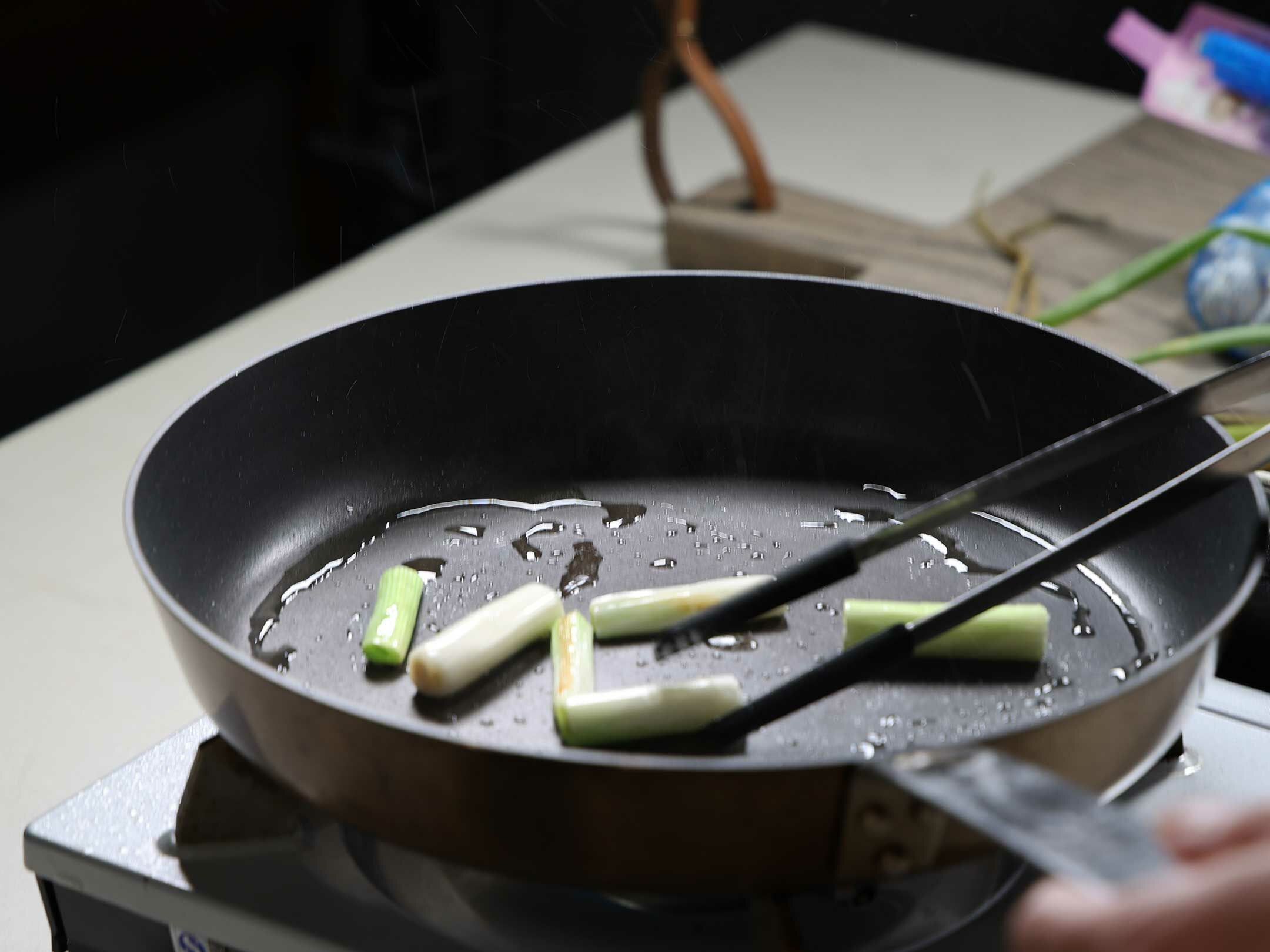 3. 鍋中加入蔥段與蒜末,翻炒出香氣,取出備用。