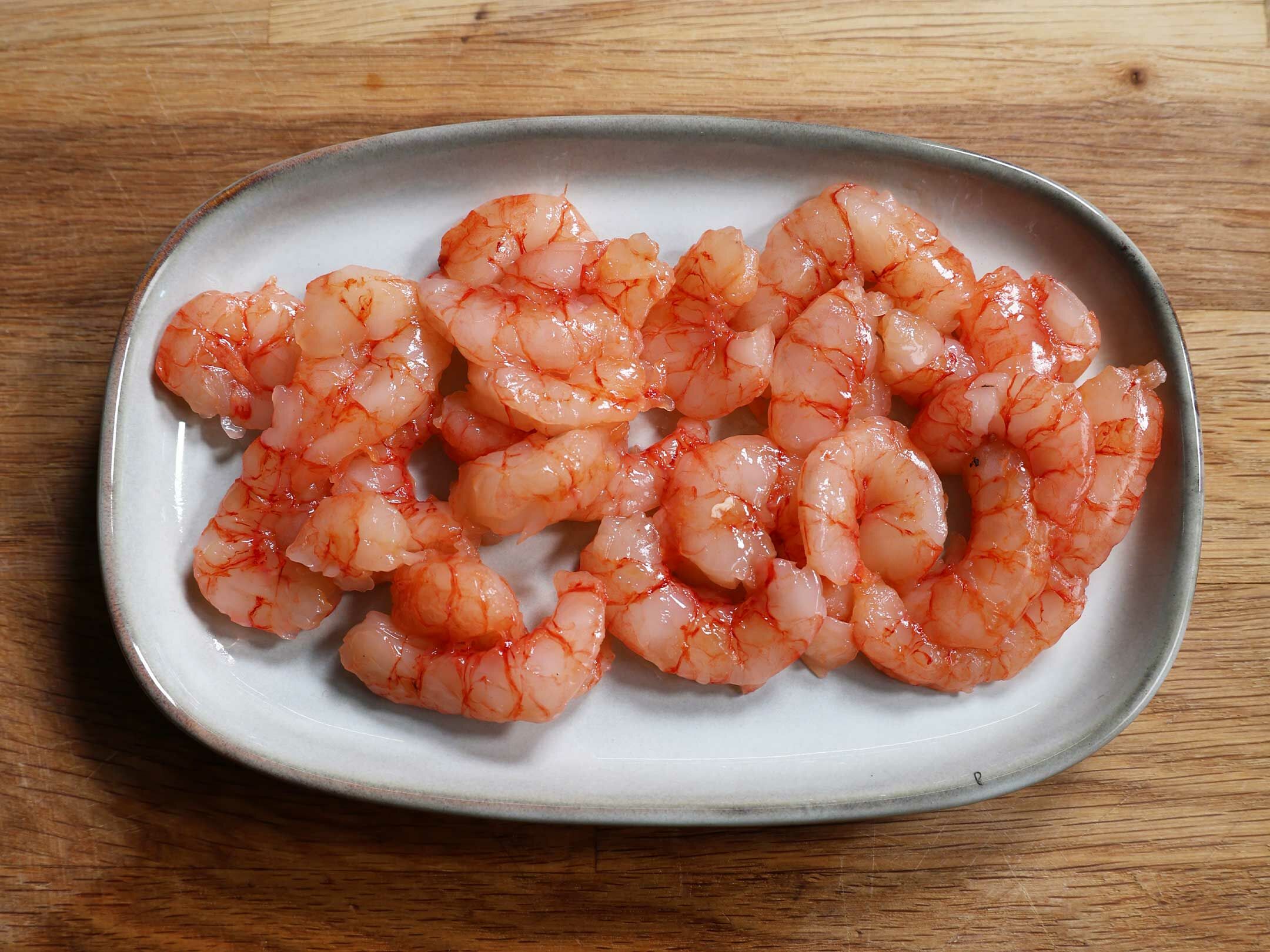 1. 胭脂蝦仁退冰洗淨,青蔥和蔥白切段,蒜切末備好。