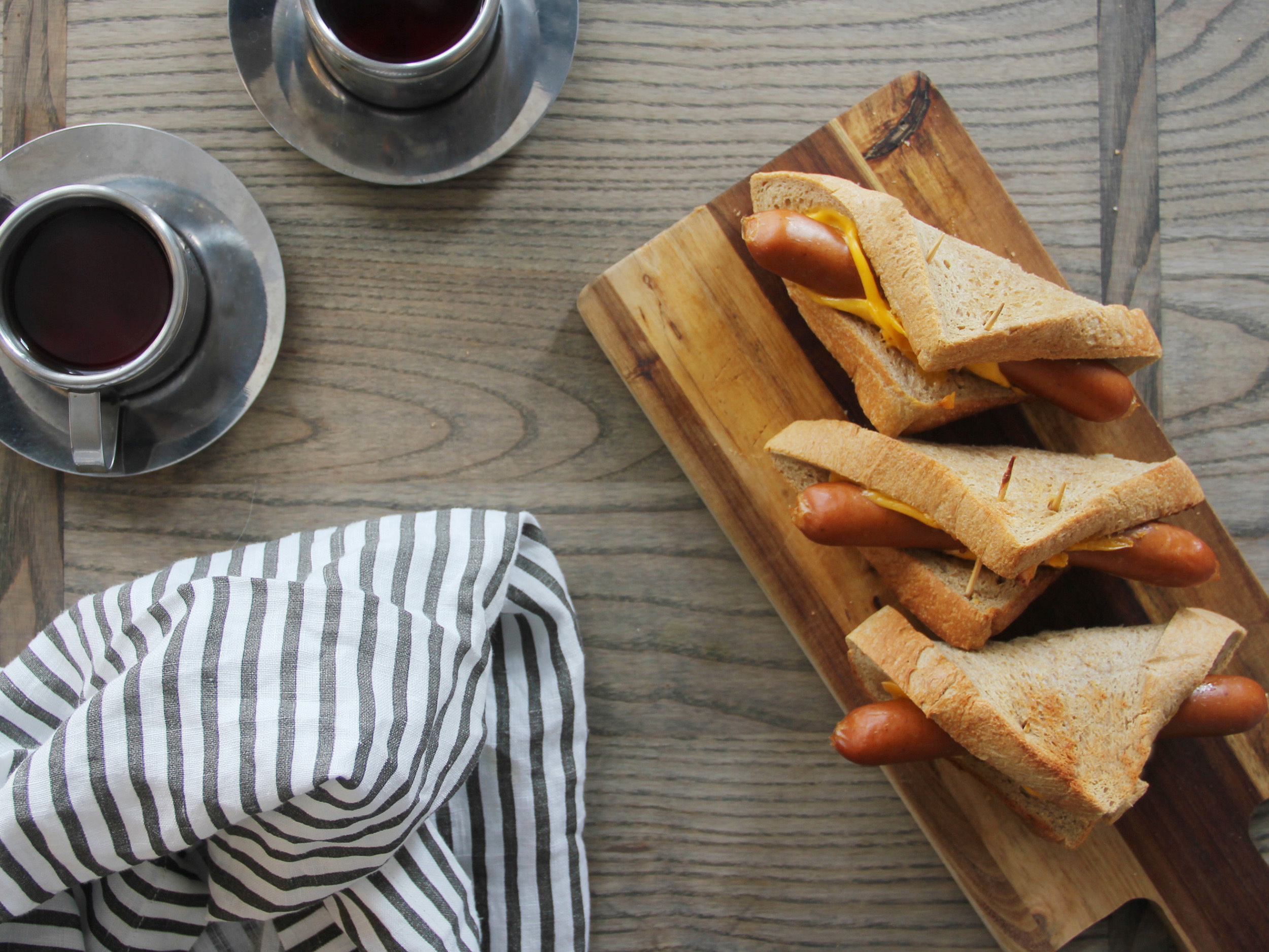 微波爐 ✒︎ 微波加熱 30 秒,記得裝一小碗水一起進微波爐,不讓吐司的水分流失。