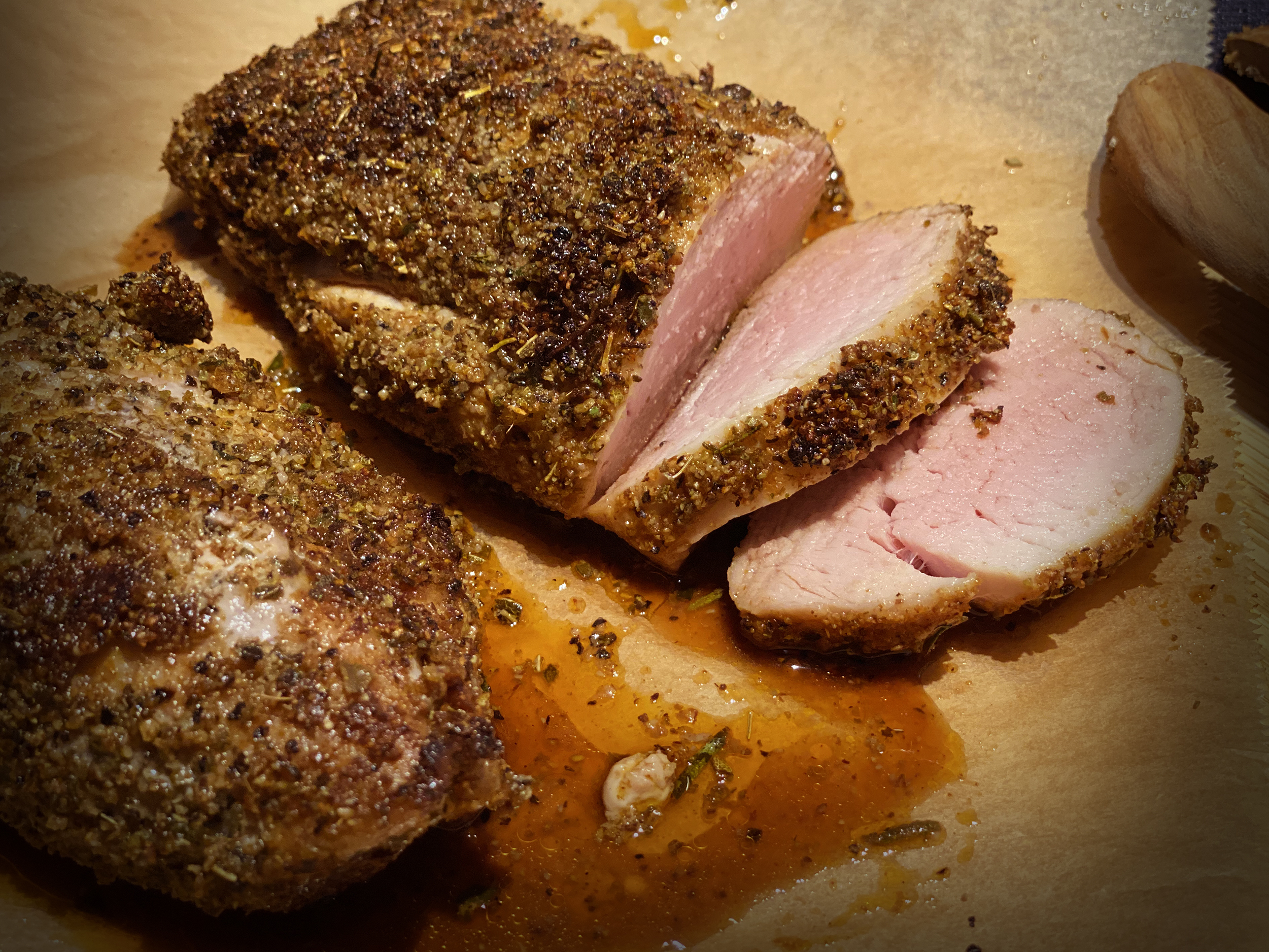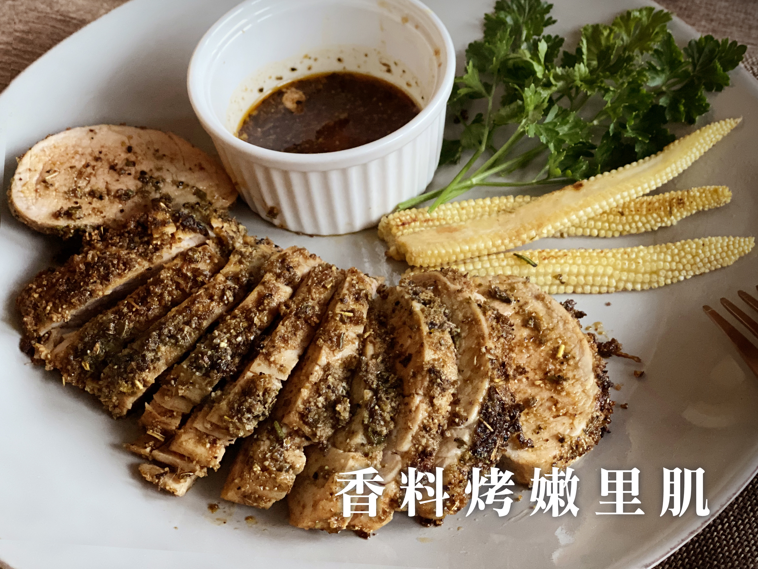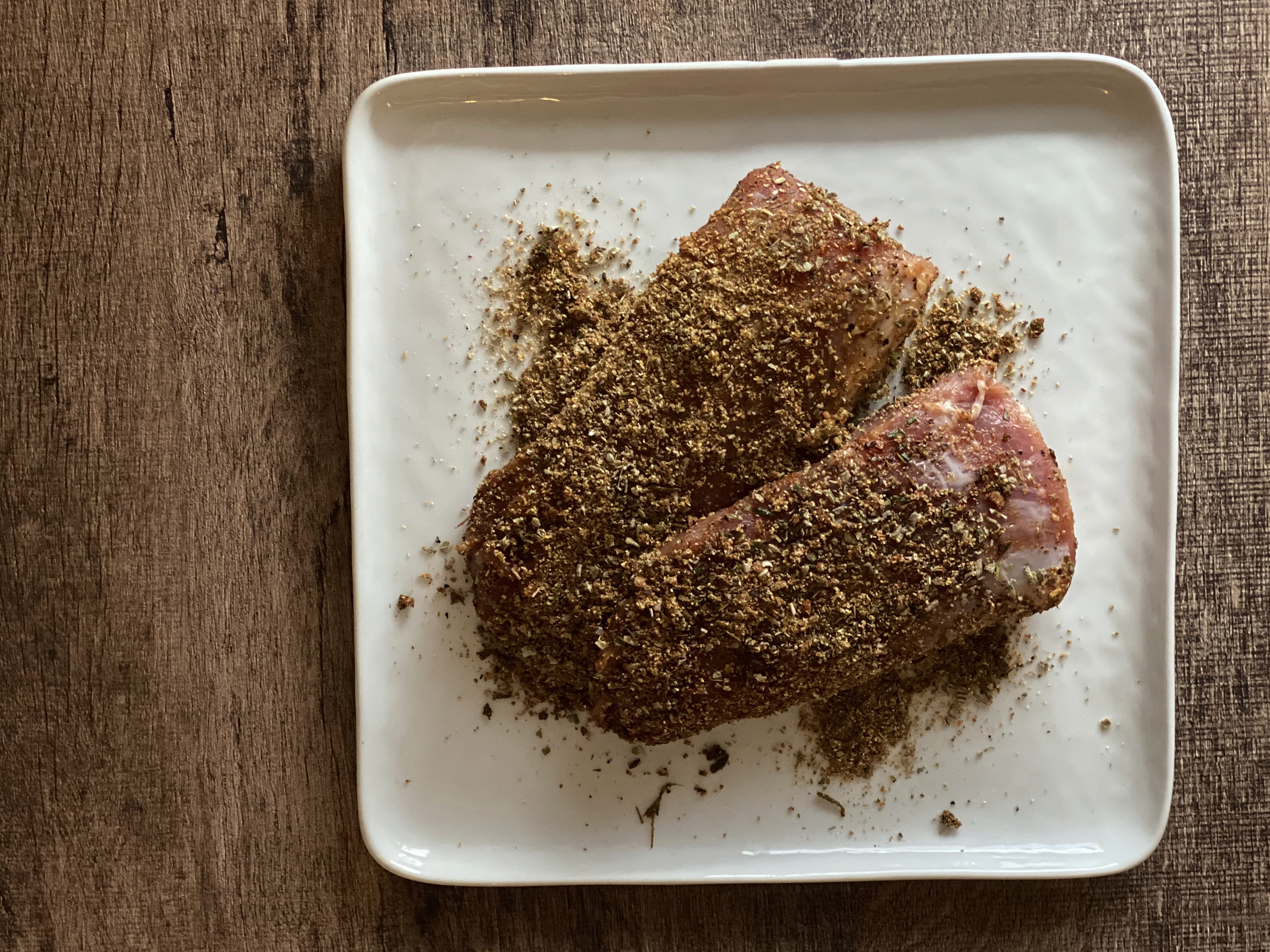 1. 將小里肌擦乾, 用叉子在肉上戳洞,並抹上橄欖油與醃料抹勻