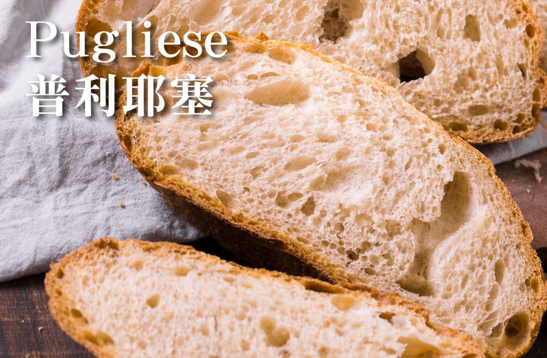 Pugliese(普利耶塞): 來自南義大利的麵包,外形粗糙,內部鬆軟,有著豐富的麥香。