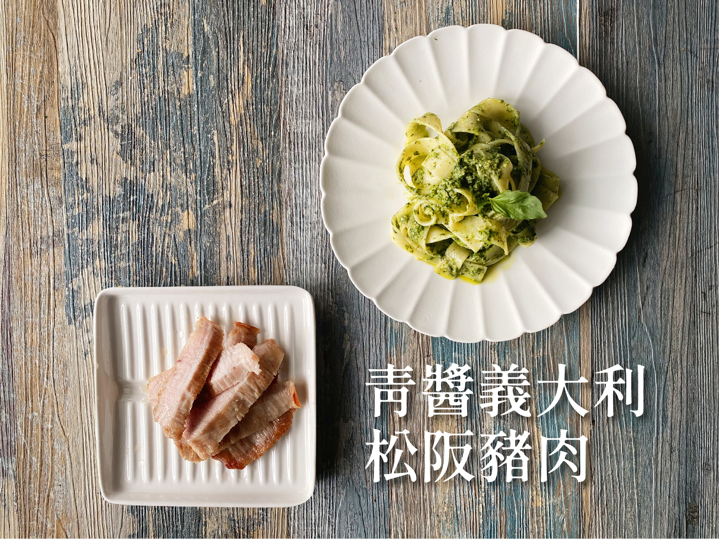4.青醬義大利麵裝盤,撒上刨絲起司,放上羅勒葉點綴,就完成了!