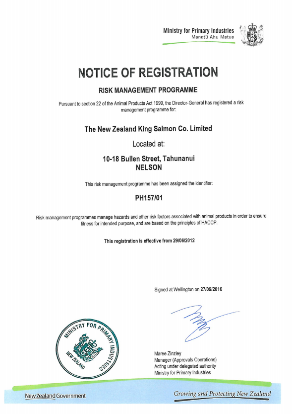 RMP (HACCP) - NOTICE OF REGISTRATION