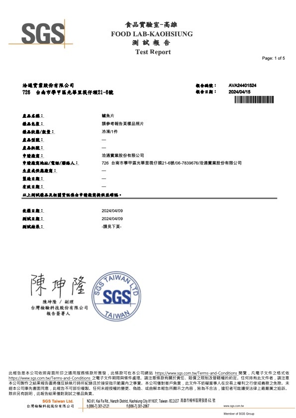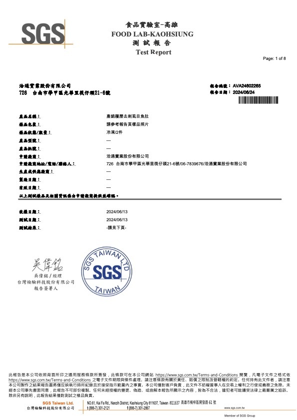 金目鱸魚片 檢驗報告