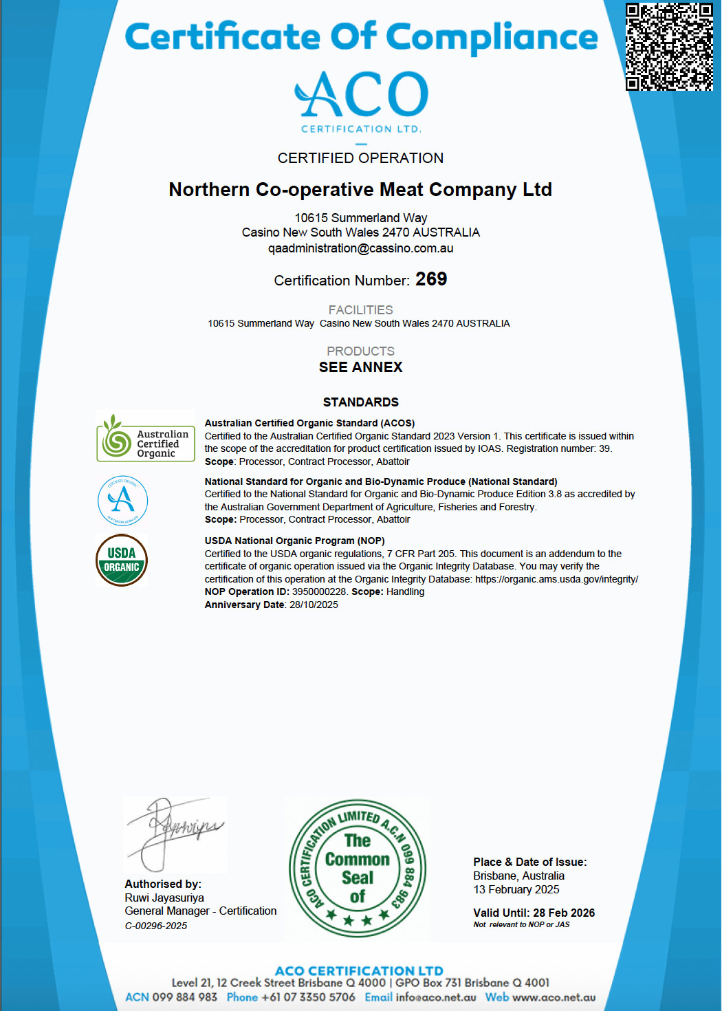 澳洲牛肉ACO有機認證