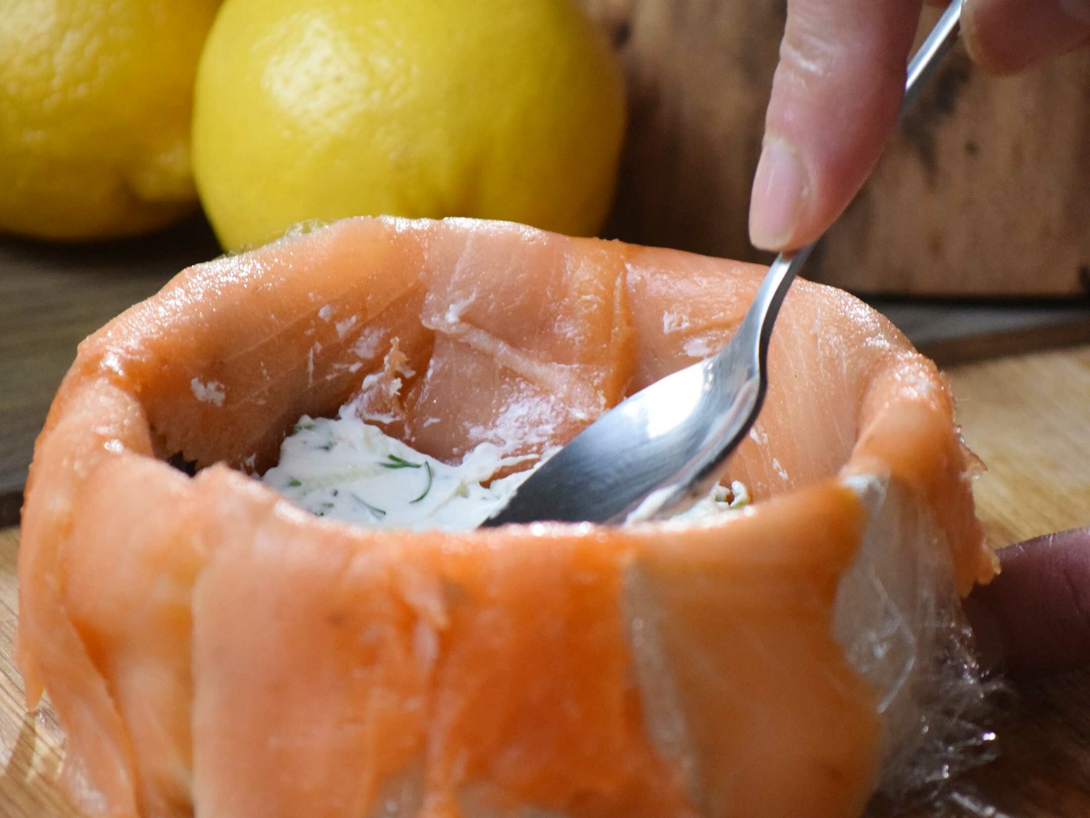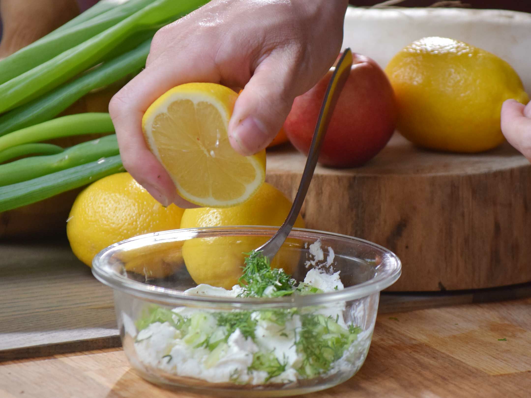180克奶油起司 1-2湯匙切碎的韭蔥(換成青蔥) 1湯匙切碎的蒔蘿 半個檸檬的汁 鹽和胡椒調味