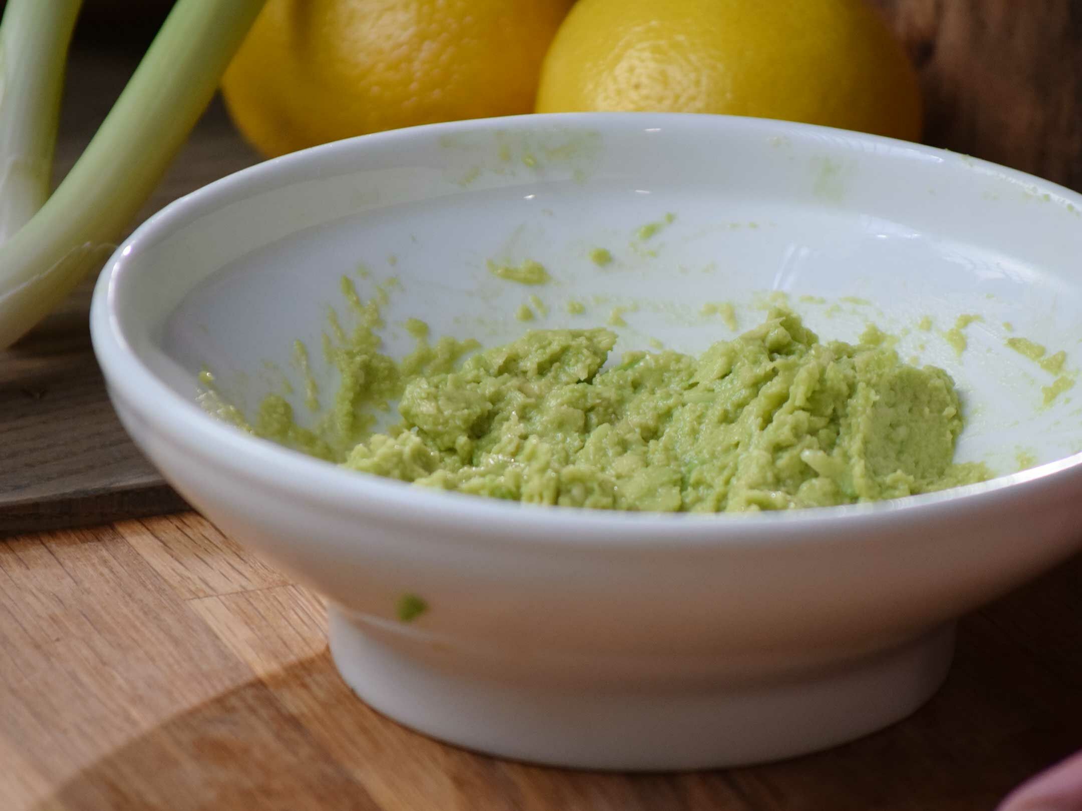 1個酪梨搗成泥 1-2湯匙切碎的香菜 半個檸檬的汁 鹽和胡椒調味