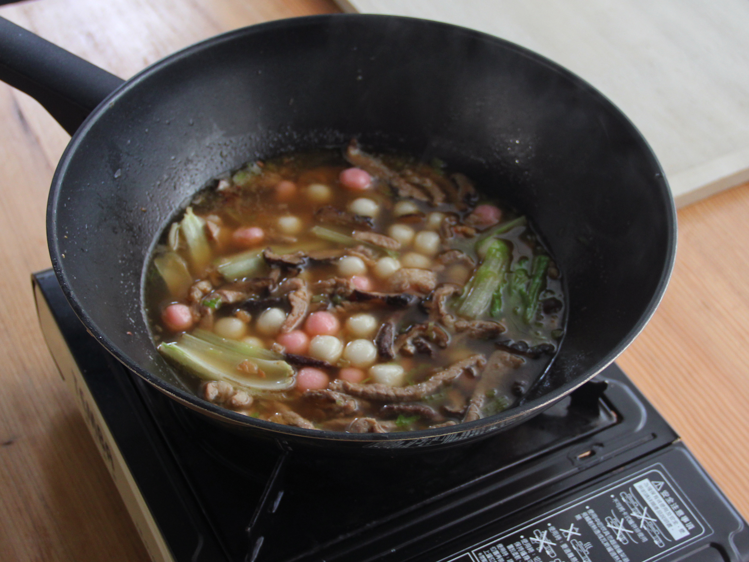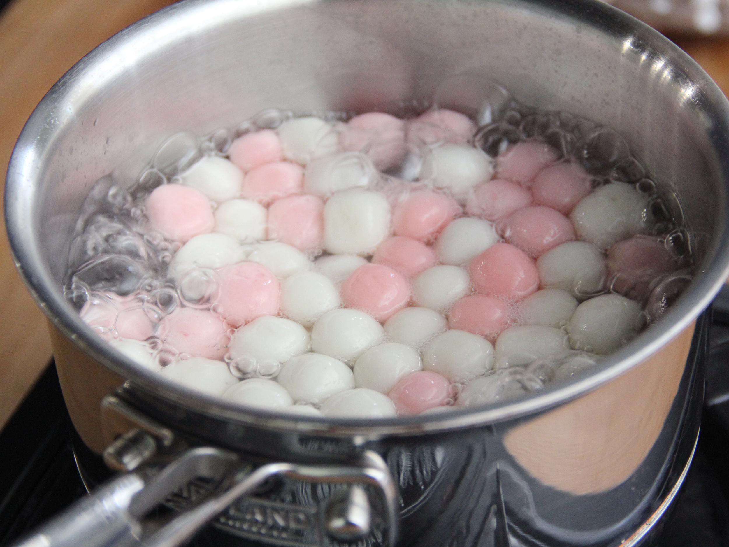 Step 6:起滾水鍋放入1茶匙鹽,將小湯圓入鍋煮至浮起後撈起,放入湯鍋中煨煮入味。