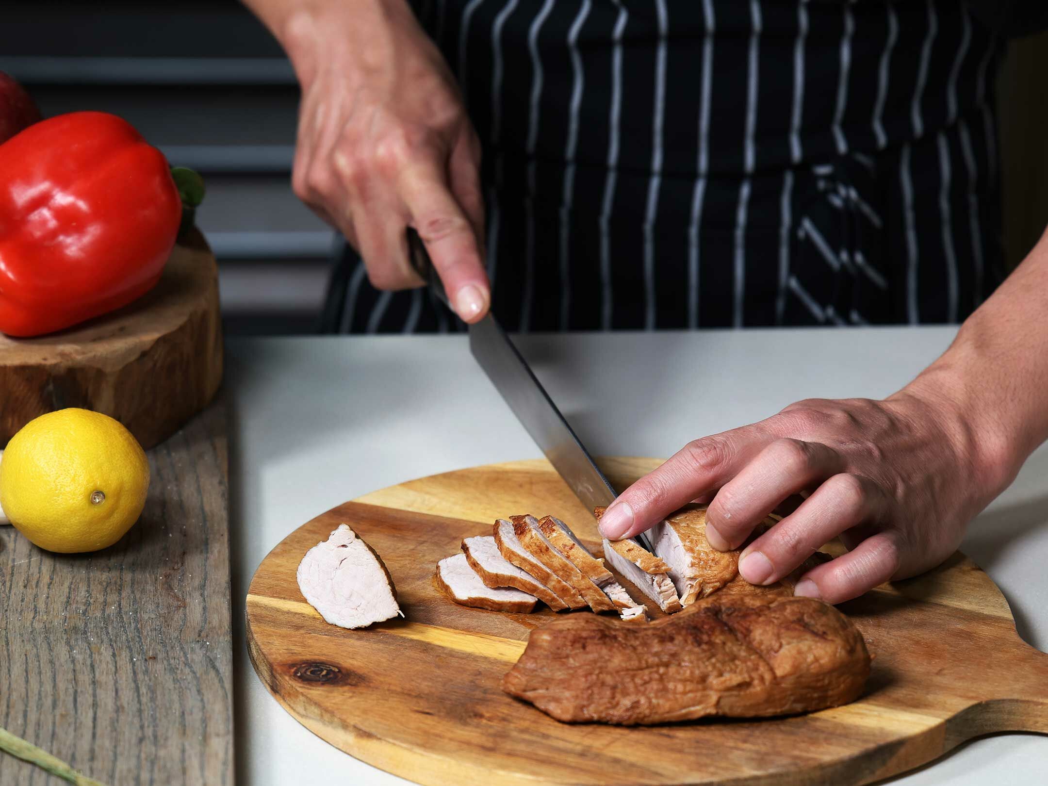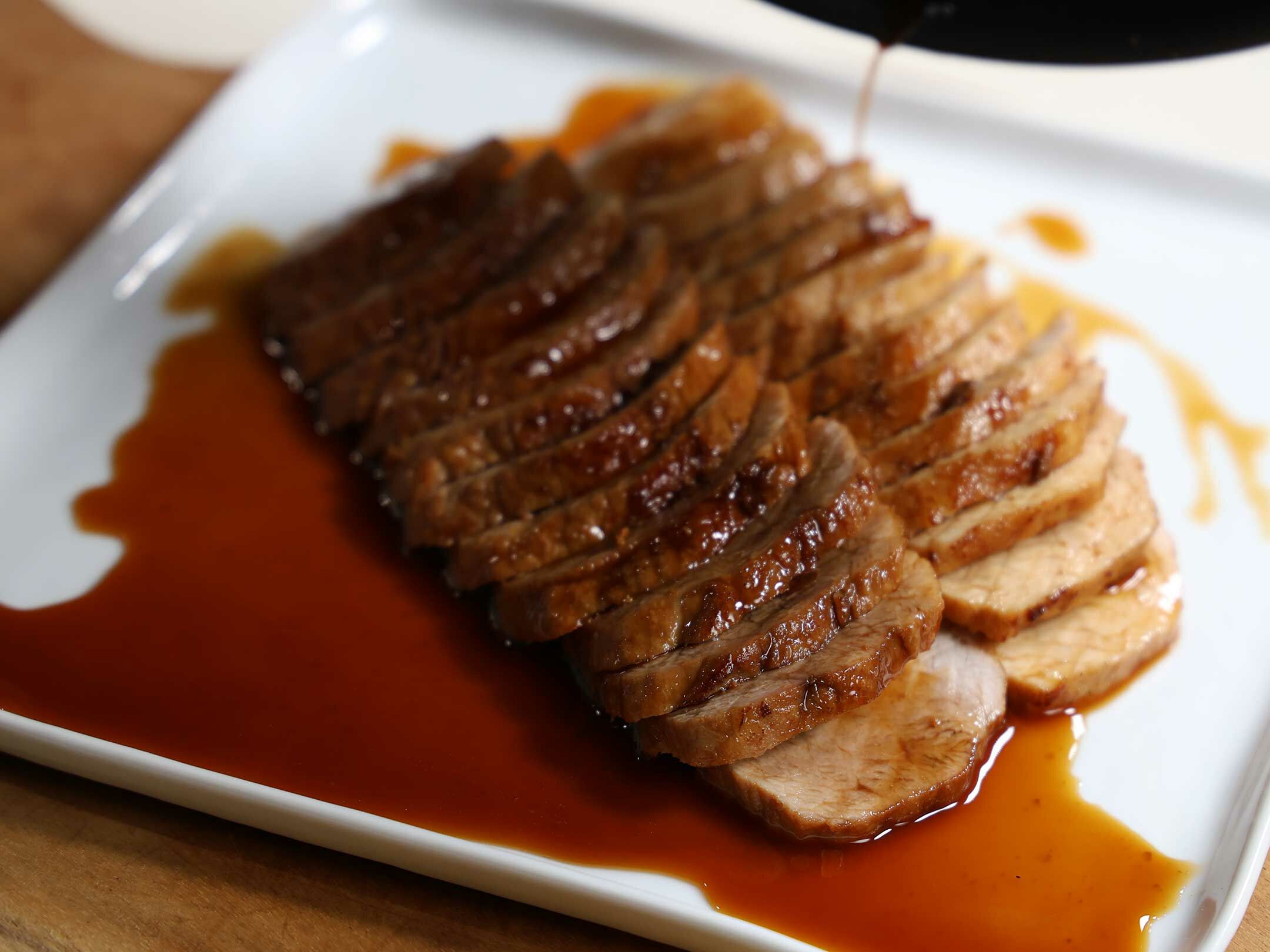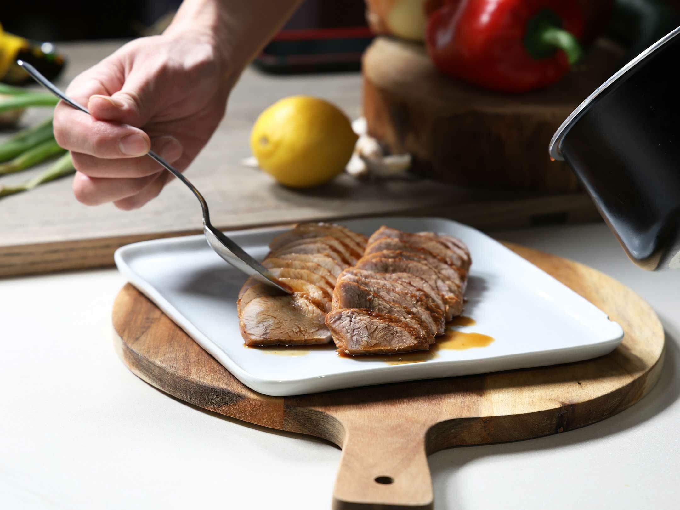 1. 1大匙油,開中火,將枕頭肉放入,煎至肉反白