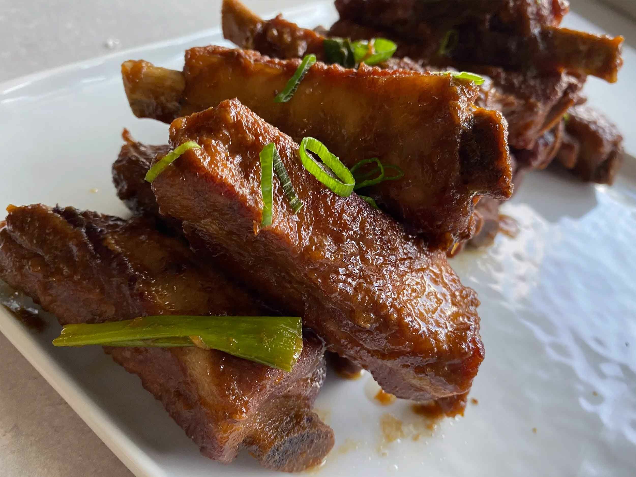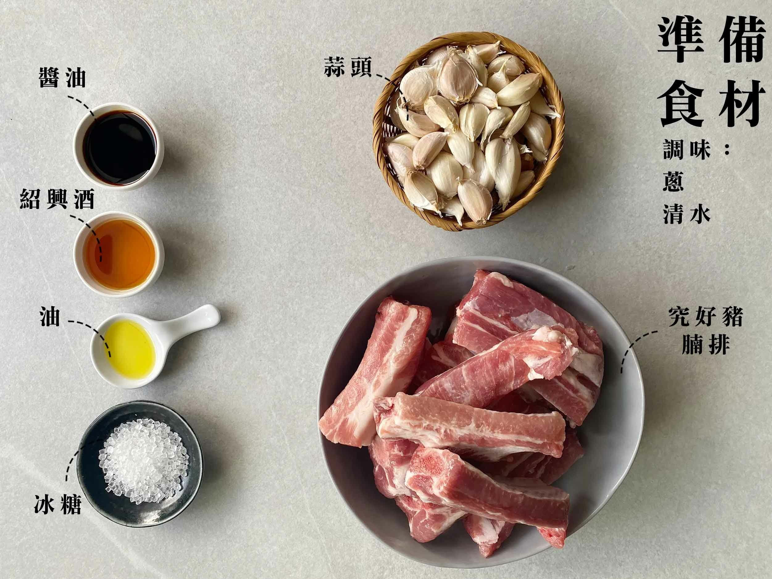 2.將腩排與醬油、紹興酒、冰糖醃製兩小時或一晚