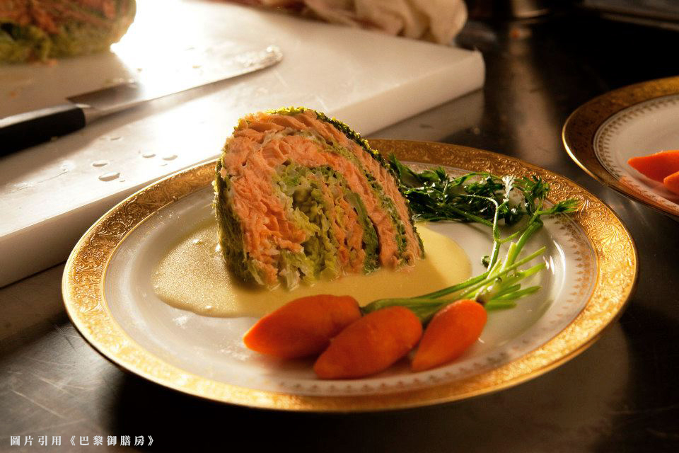 以前有一位知名影星曾經說『在我看來,沒有小角色,只有小演員。』這話若套在一個主廚身上,一定不會分主料、輔料、配料或是調味料。電影 《巴黎御膳房》有一幕令人印象深刻,在一場總統宴客中,主廚把浸在鮮香高湯的鮭魚甘藍菜捲拿出,慢慢切開湯汁流出,頂端再加了一片紅蘿蔔葉。接著主廚在廚房來回踱步,直到餐盤端出,知曉過程中總統曾細細研究過陪襯的蘿蔔葉,才滿意點頭。