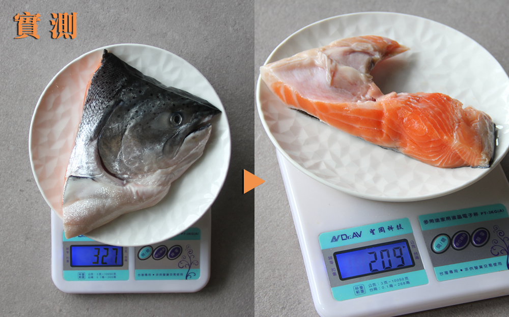 300g的魚頭,實測有209g的橘肉+下巴的部分