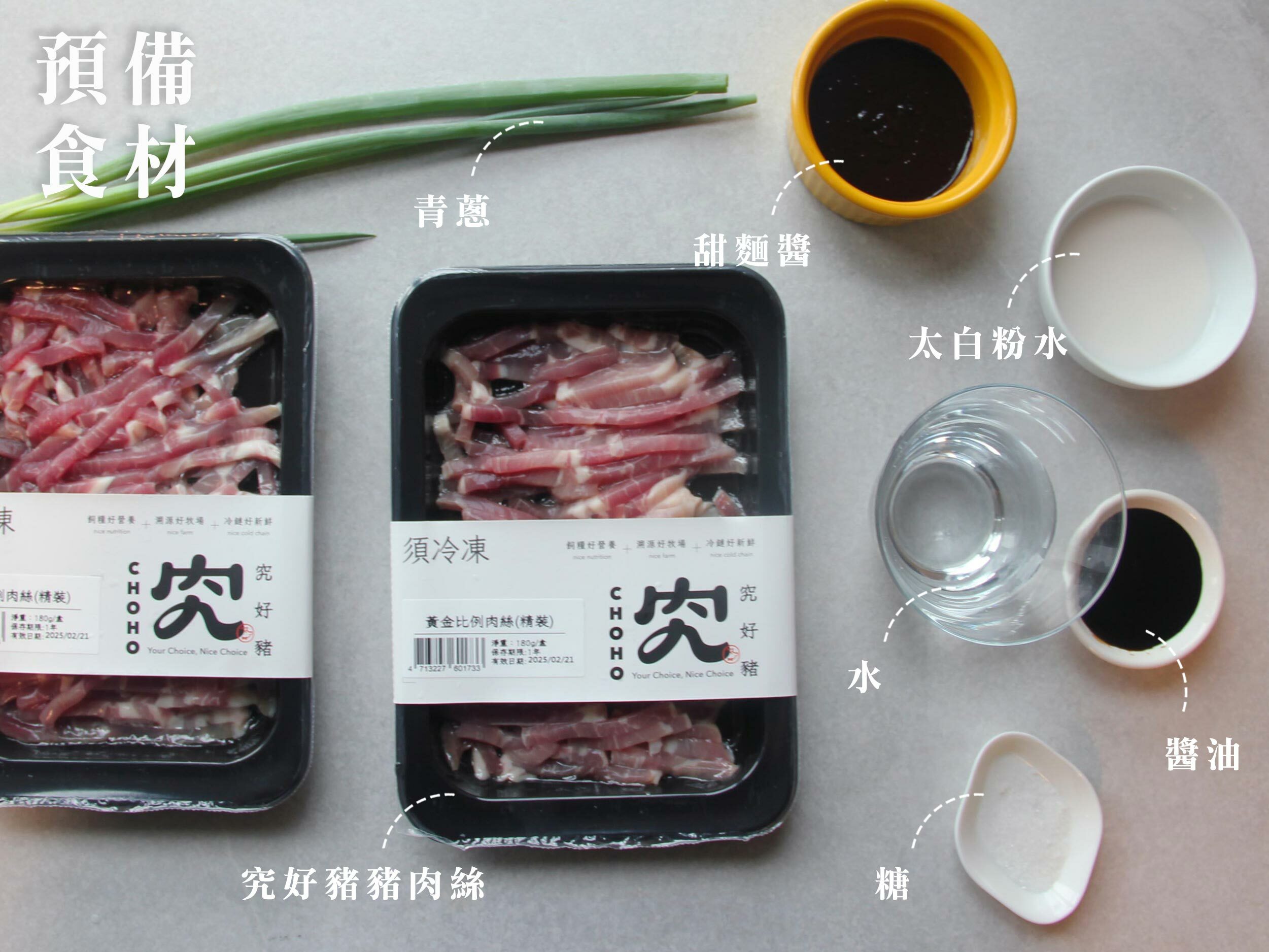 1.將肉絲用醬油與太白粉水醃製15分鐘備用