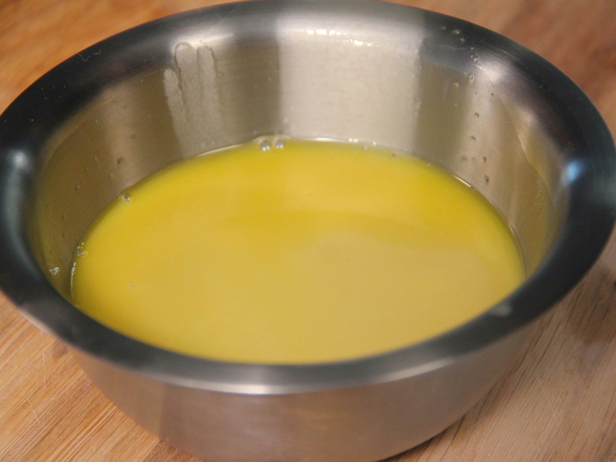 3.開始製作油酥: 將低筋麵粉與油放入平底鍋加熱炒至金黃色取出備用