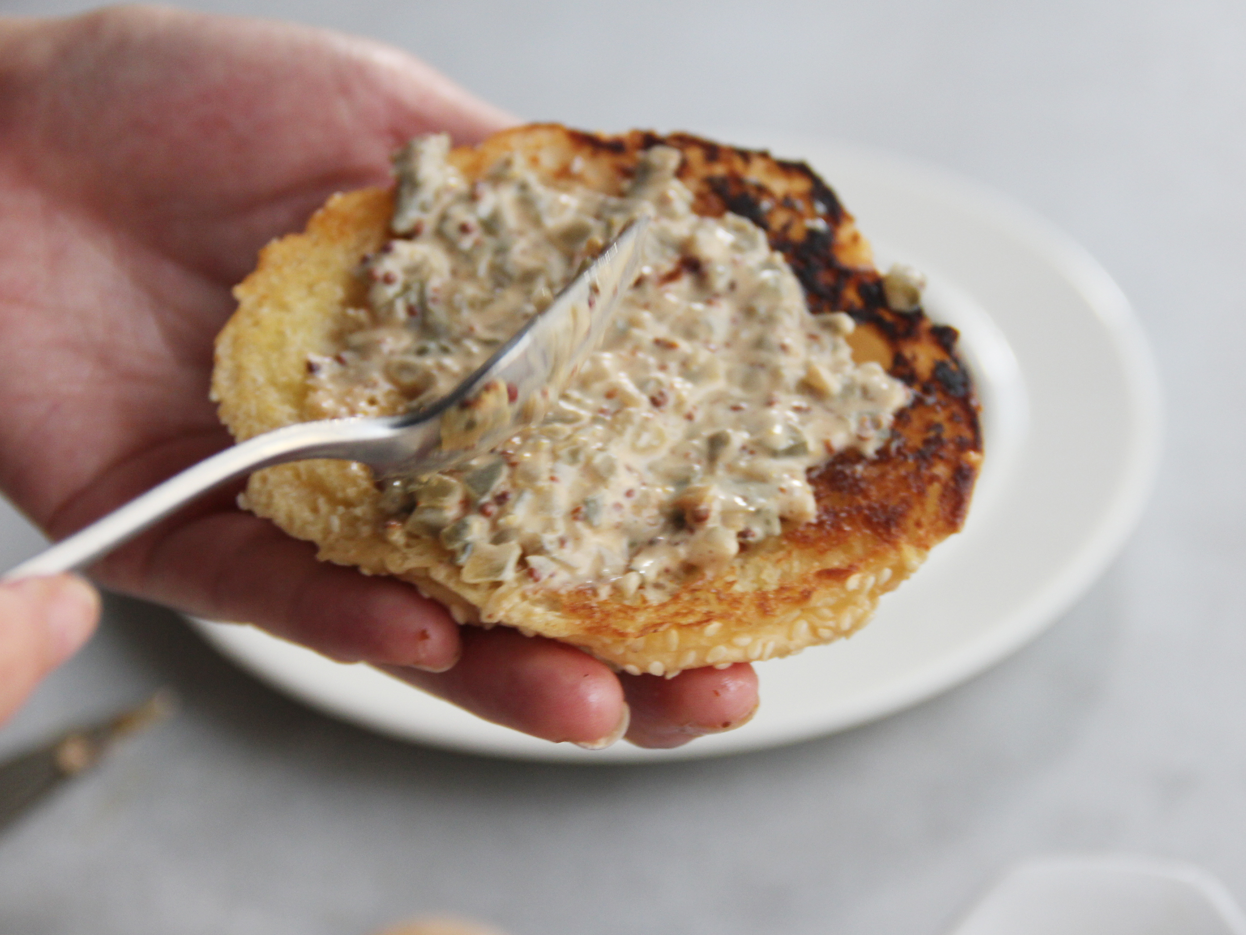 Step 8.漢堡內部塗上Step 3.醬料
