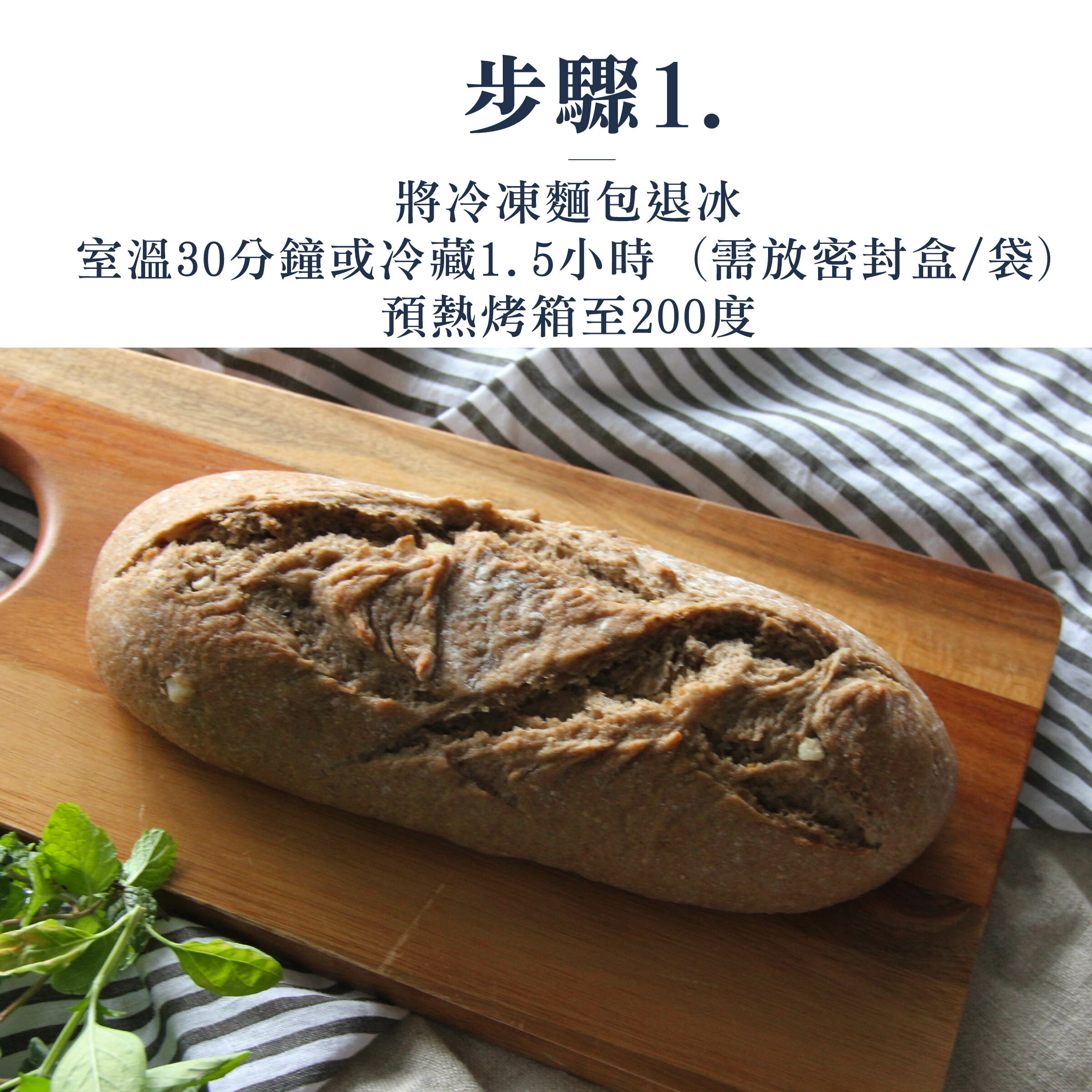1.將冷凍麵包退冰, 室溫 30 分鐘 or 冷藏 1.5 小時 (需放密封盒/袋),預熱烤箱至 200 度