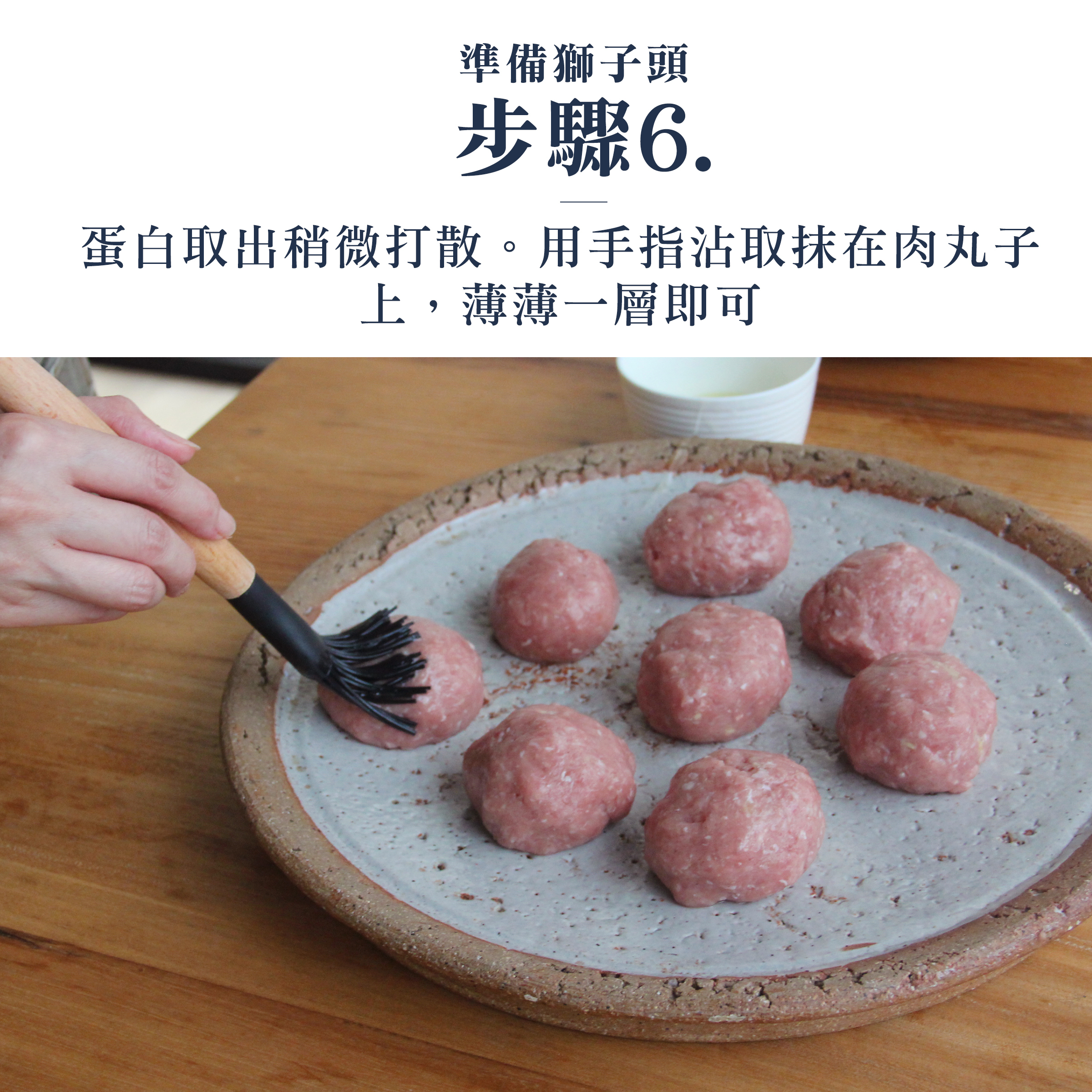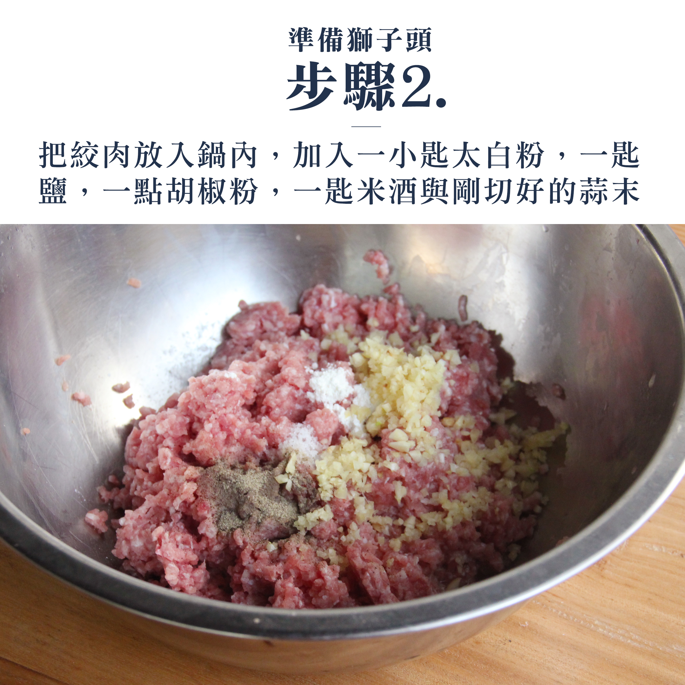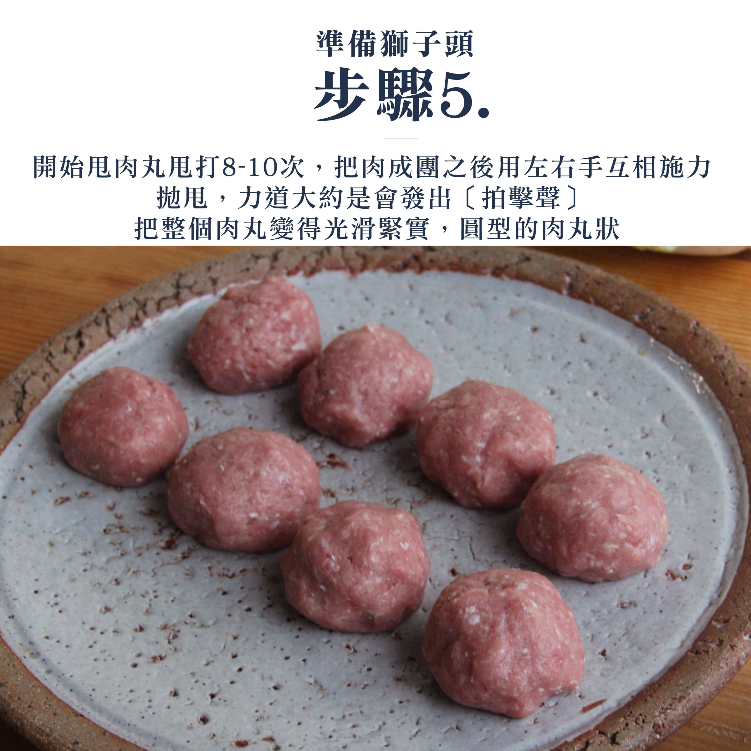 眾所周知,蔣公非常的愛吃奚家所料理的「砂鍋蛤蜊獅子頭」,也因而讓這道料理有「蔣公獅子頭」的稱號,並且時常出現在重大宴客的場合中。這個版本的獅子頭是以砂鍋清燉,肉丸子也沒有經過油炸,僅是在肉丸表面刷上一層蛋白防止散開。蔣公獅子頭有非常多種版本,本次的食譜便是使用究好豬與果木小薰的豬肉調和比例,做出最簡單輕鬆的新手年菜料理。