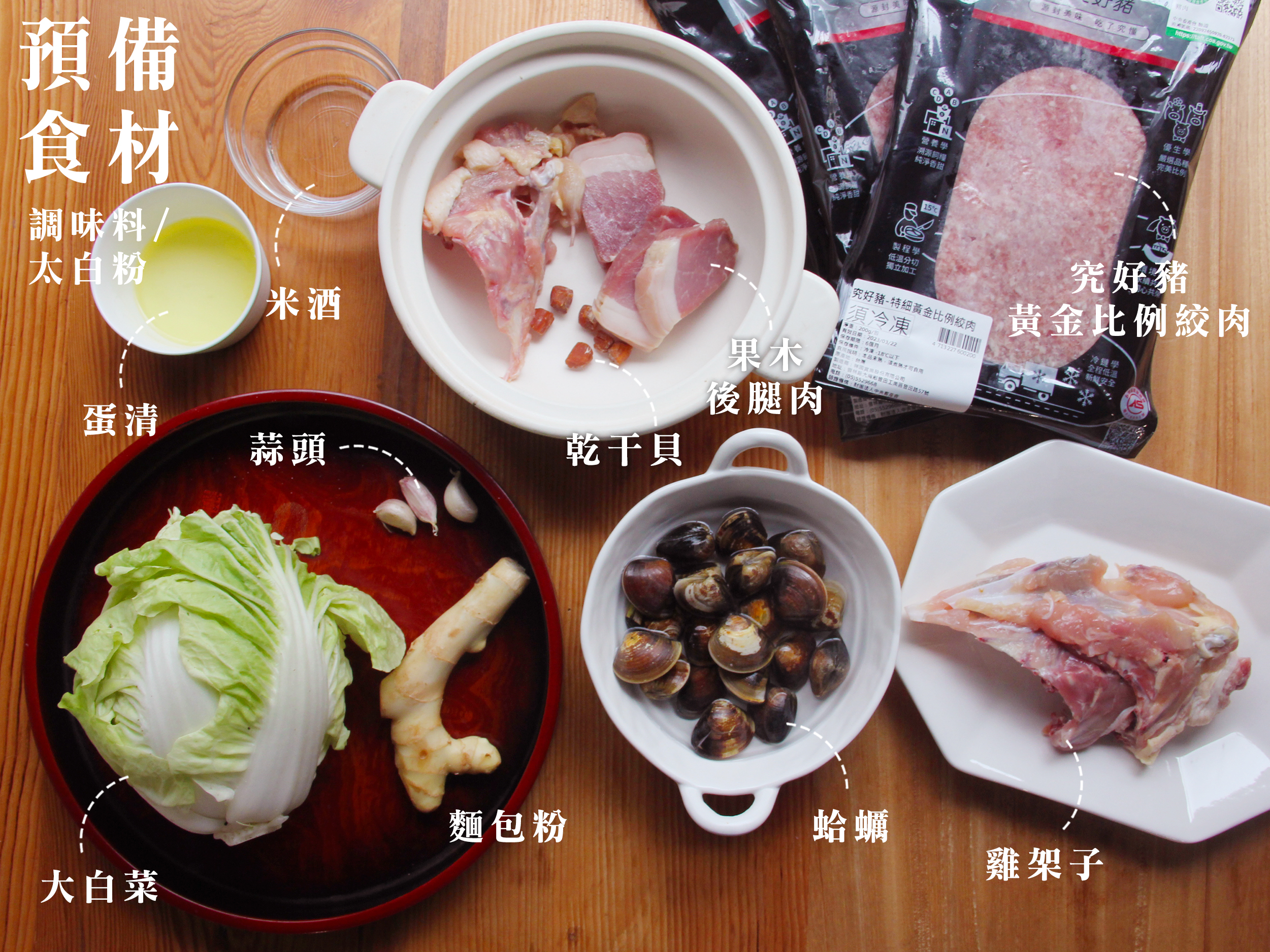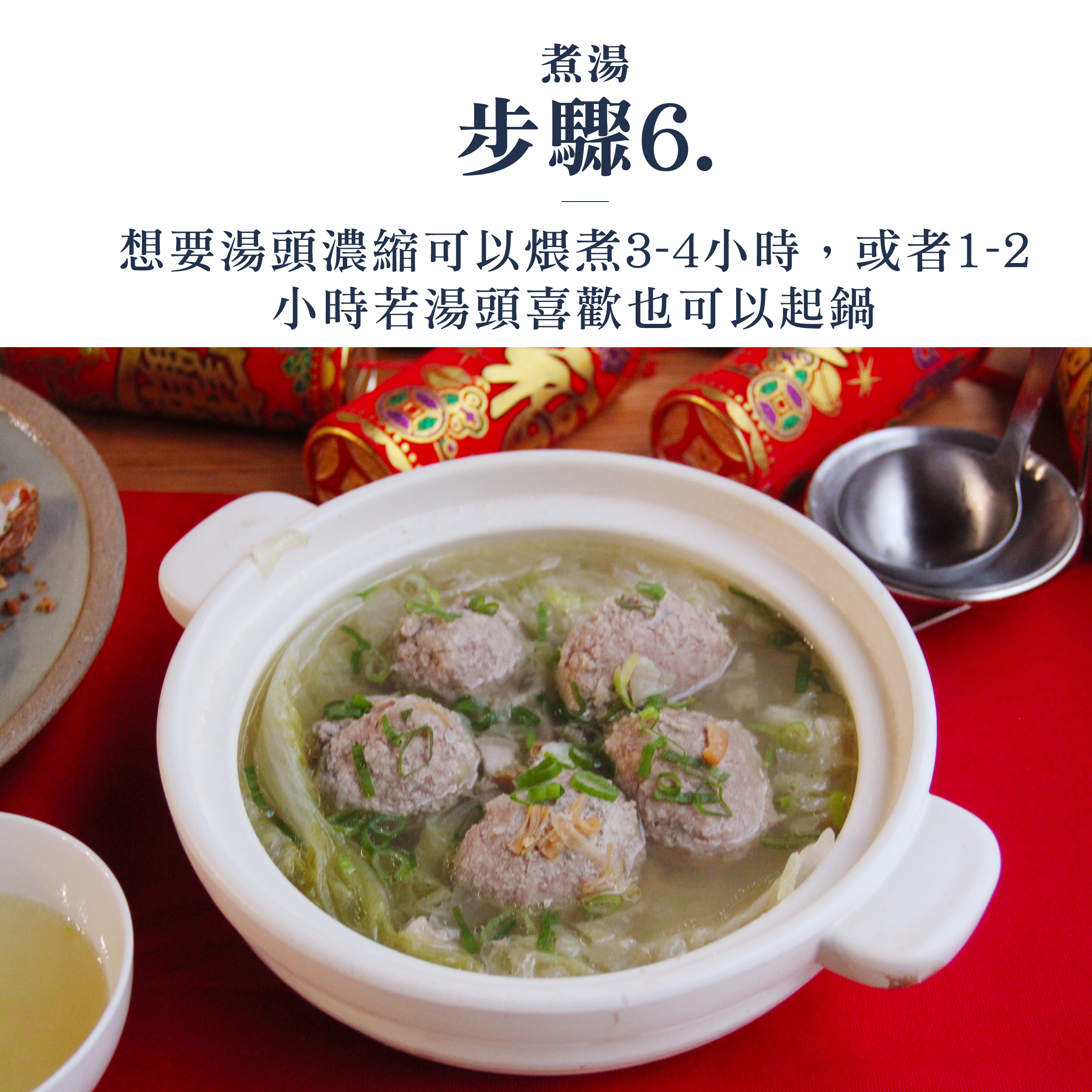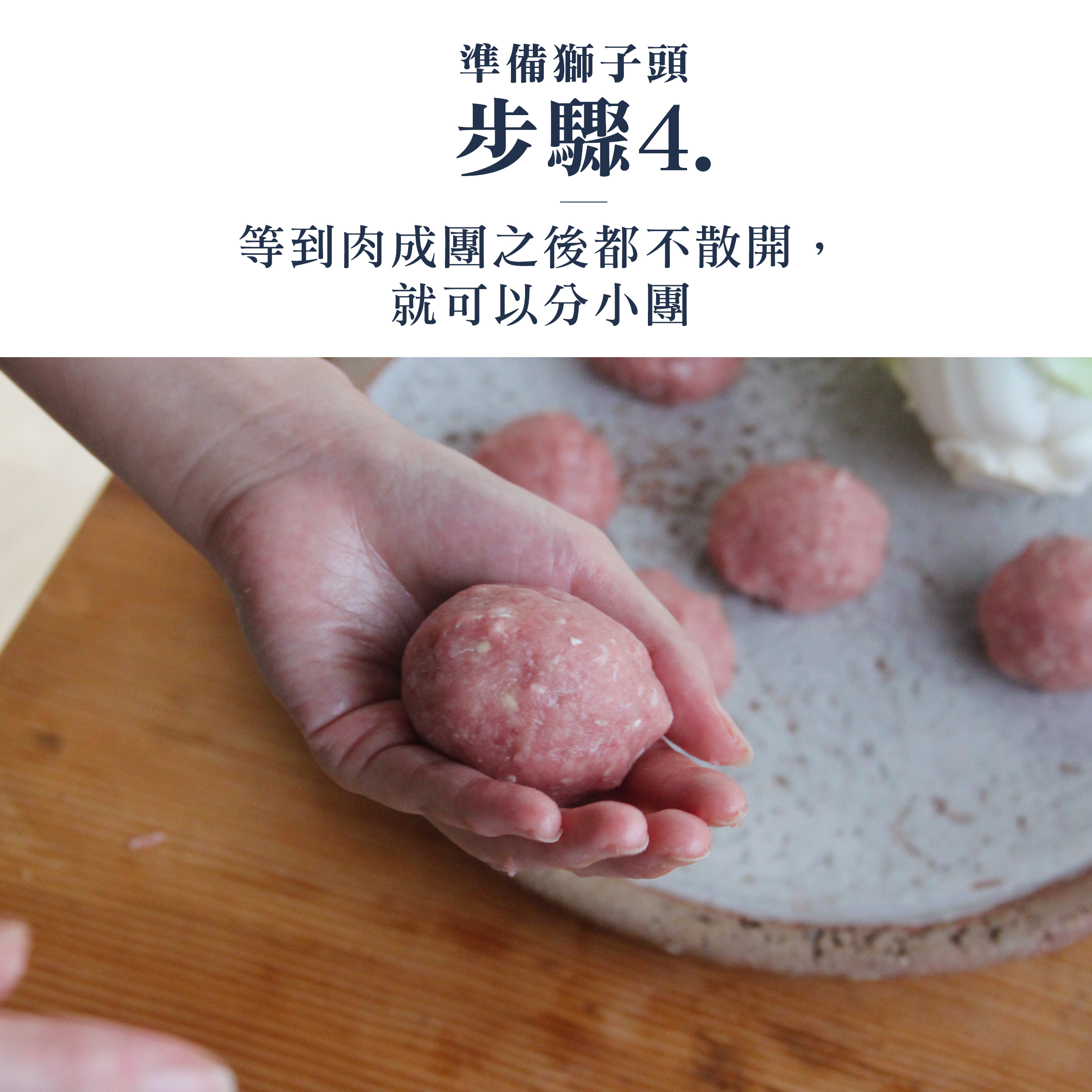 眾所周知,蔣公非常的愛吃奚家所料理的「砂鍋蛤蜊獅子頭」,也因而讓這道料理有「蔣公獅子頭」的稱號,並且時常出現在重大宴客的場合中。這個版本的獅子頭是以砂鍋清燉,肉丸子也沒有經過油炸,僅是在肉丸表面刷上一層蛋白防止散開。蔣公獅子頭有非常多種版本,本次的食譜便是使用究好豬與果木小薰的豬肉調和比例,做出最簡單輕鬆的新手年菜料理。