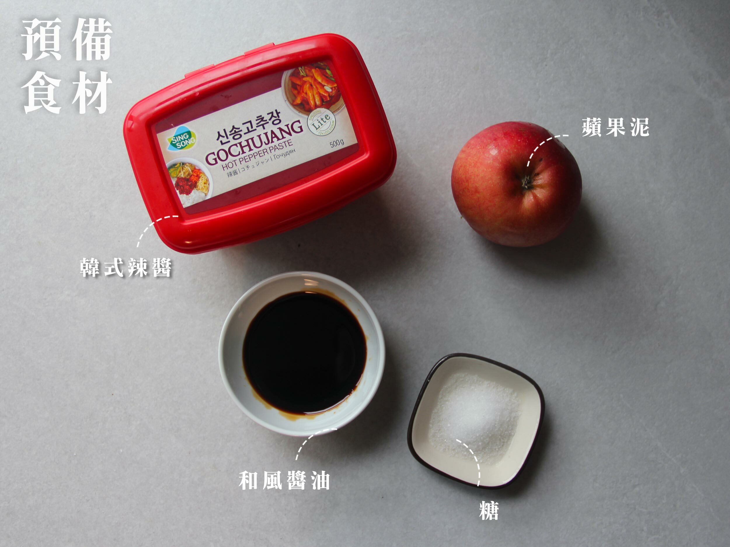 2.蘋果泥、糖、韓式辣醬、和風醬油攪拌均勻,一邊慢慢加水或者一般醬油過濾果泥醬,自行調整味道