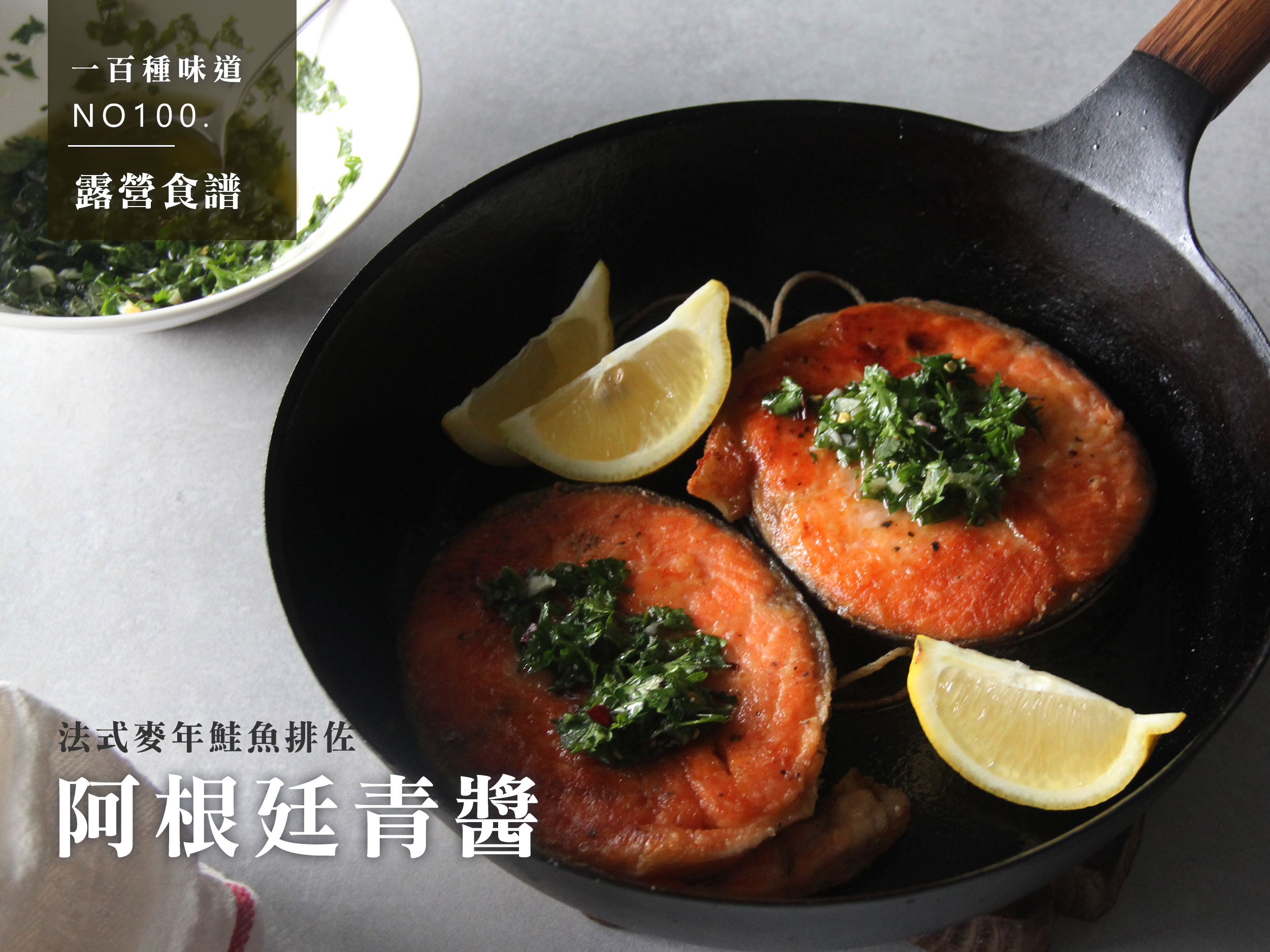 3.阿根廷青醬淋上法式麥年鮭魚排,完成
