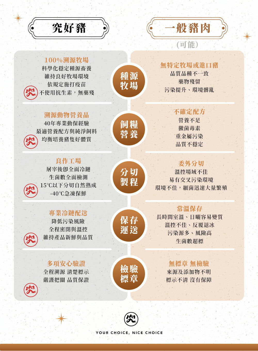 🐷 優質原料:選用100%究好豬後腿肉,確保最佳風味和質地