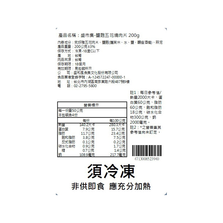 ■ 成分:究好豬五花肉片(台灣)、鹽麴(蓬萊米、水、鹽、釀造酒精)、蒜泥