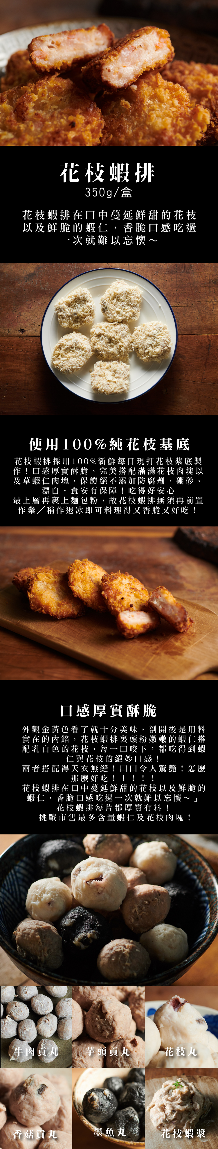● 口感厚實酥脆、完美搭配滿滿花枝肉塊以及草蝦仁肉塊