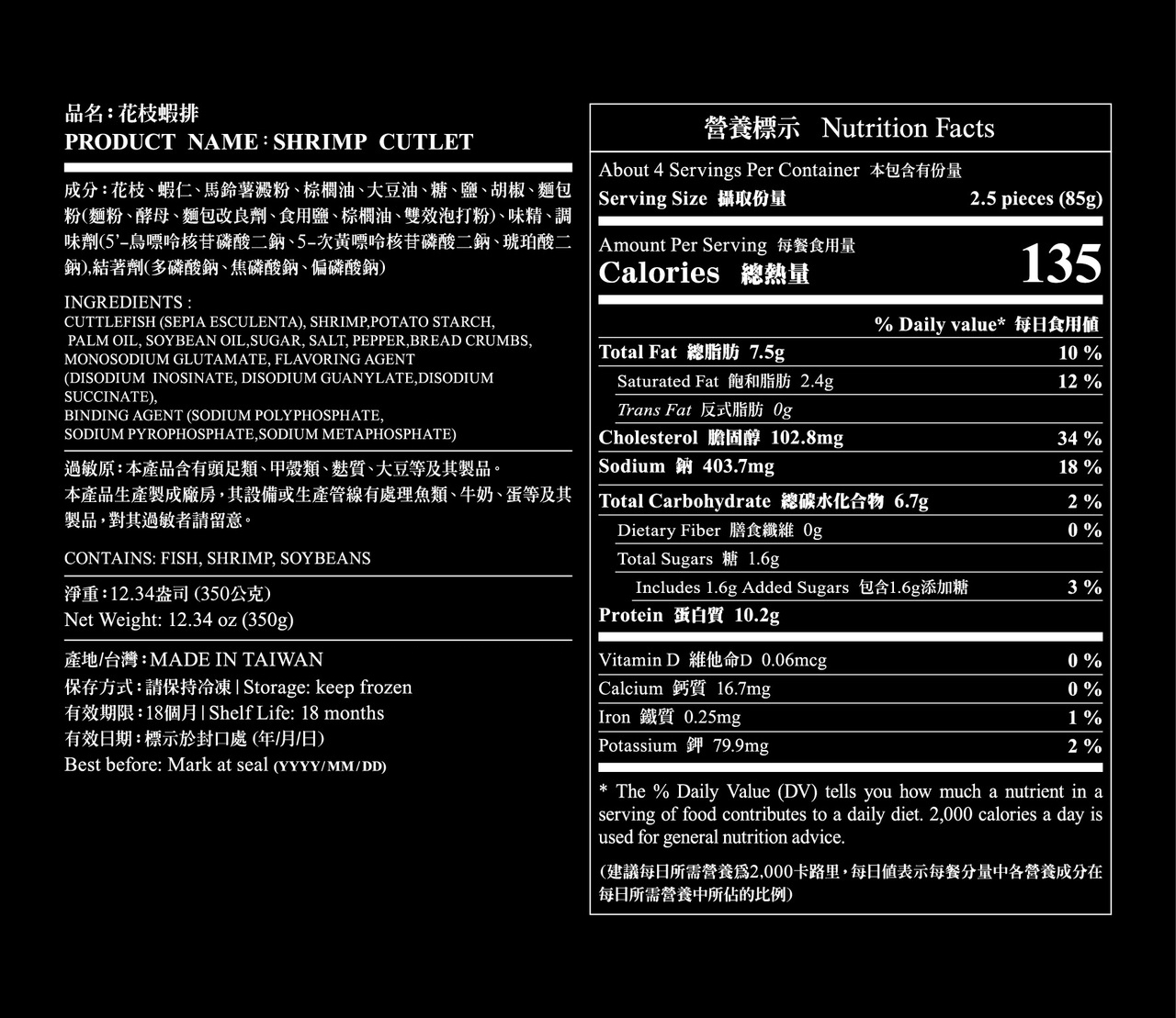 ● 使用100%花枝漿基底,搭配滿滿草蝦仁肉塊、花枝肉塊製成