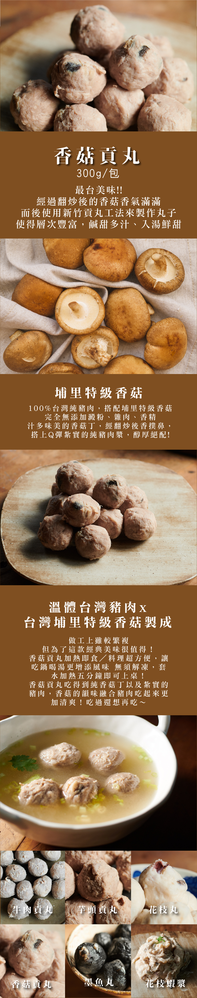 ● 埔里特級香菇搭配台灣豬肉,香氣十足, 將肉的鮮味完美調和不膩口
