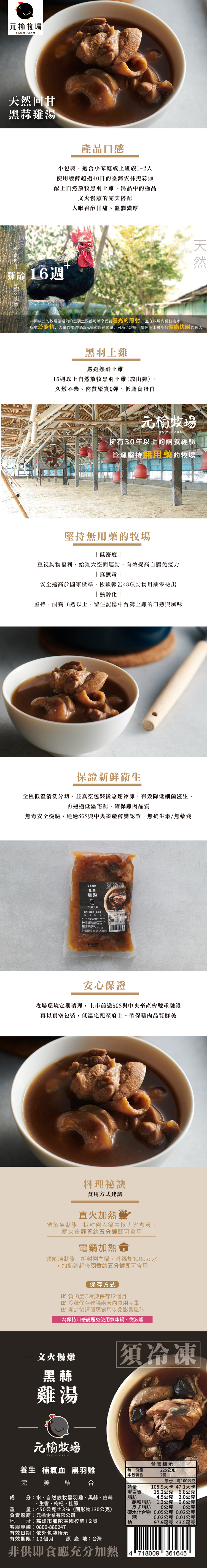 ✓ 元榆煲雞湯系列之黑蒜雞湯,使用發酵超過40日的臺灣黑蒜頭配上自然放牧黑羽土雞,湯品中的極品!